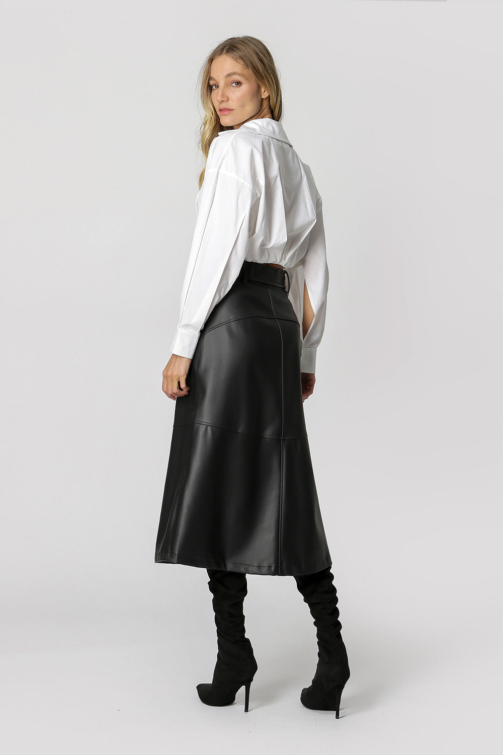 Camisa cropped com shape diferenciado, manga longa com abertura e elástico na barra. Peça feita em tricoline de algodão. Peça moderna e fashionista, uma otima opção para produções casuais.