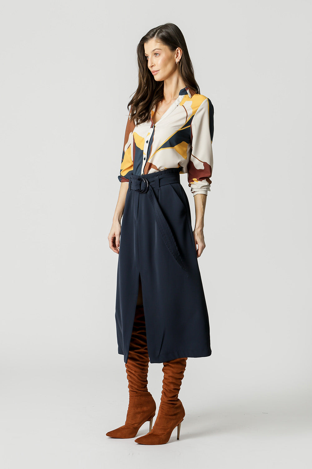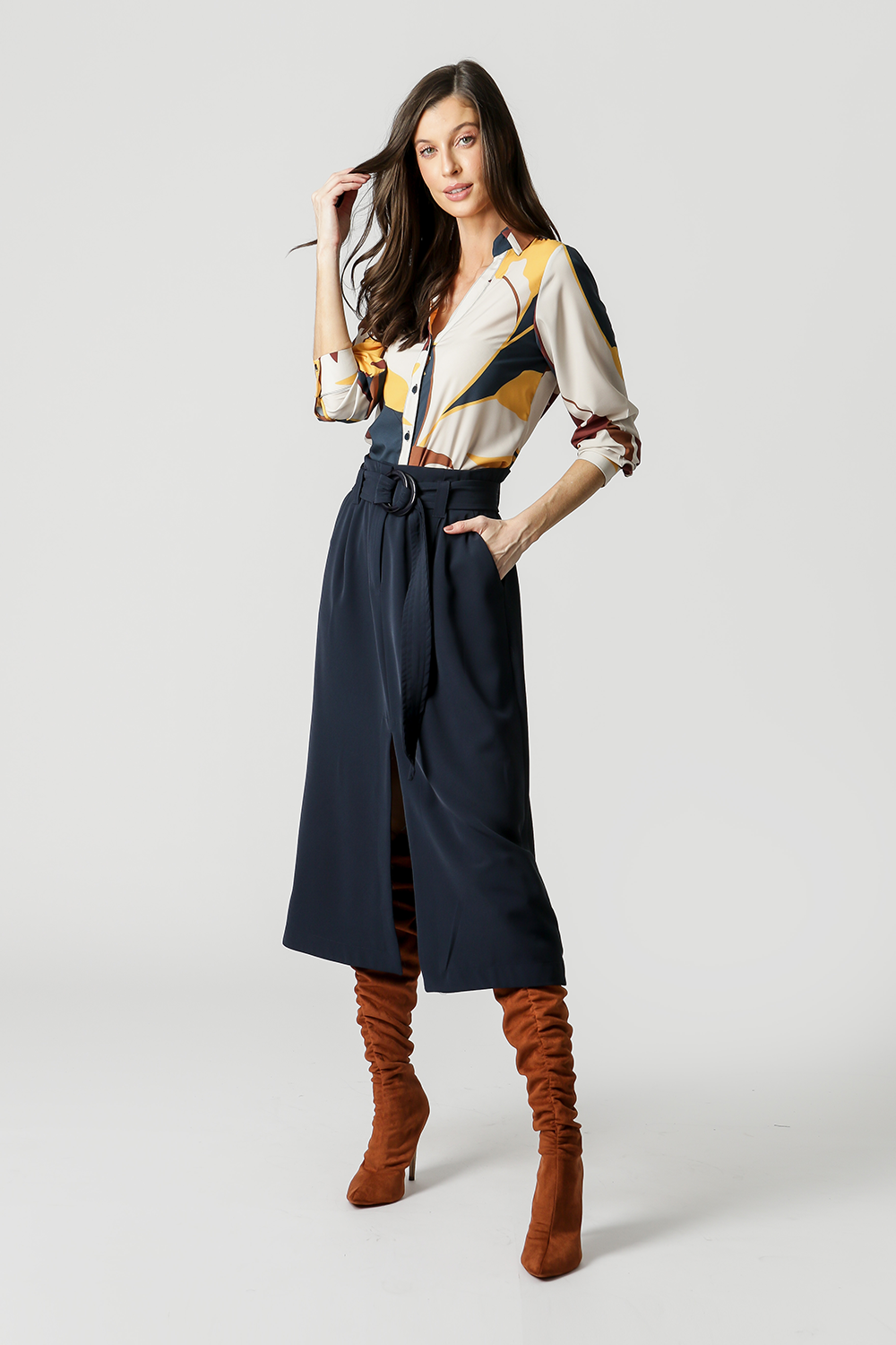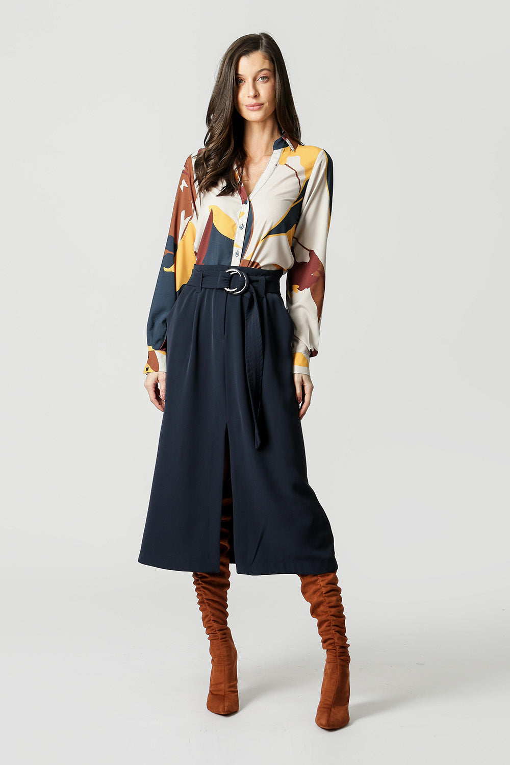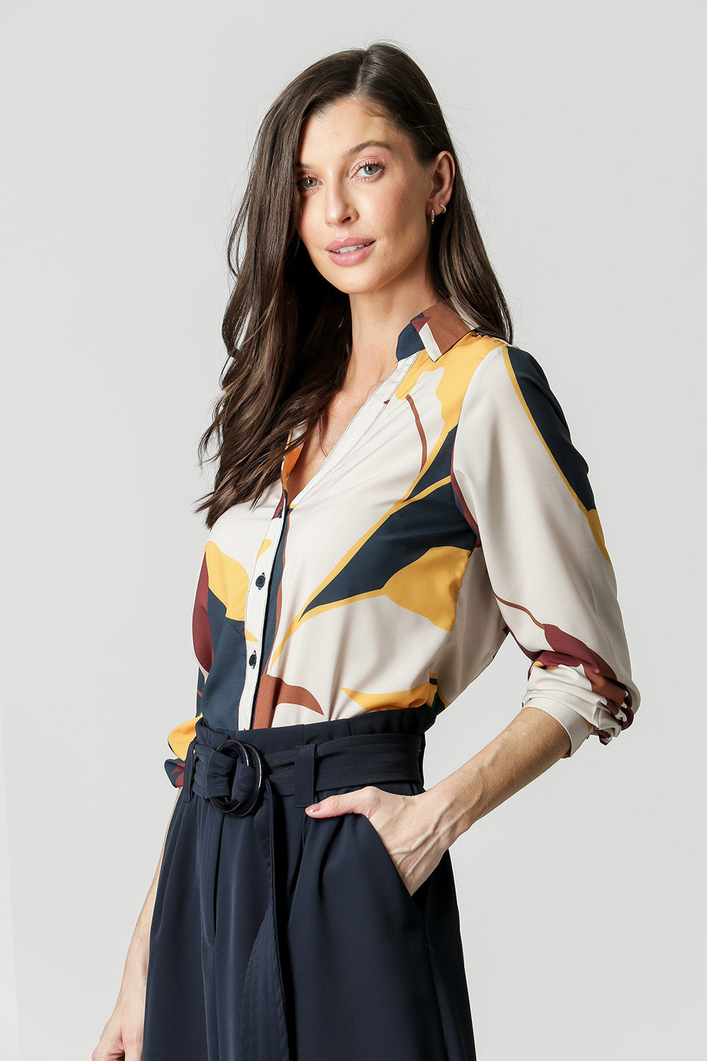 Camisa manga longa, decote V e fechamento frontal por botões. Feita em tecido leve e com estampas exclusivas. É o clássico que você precisa!