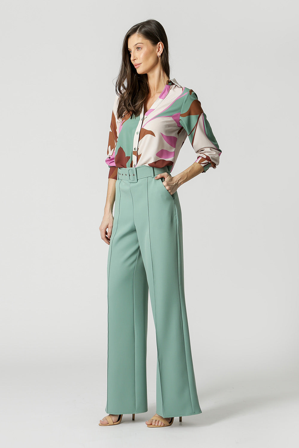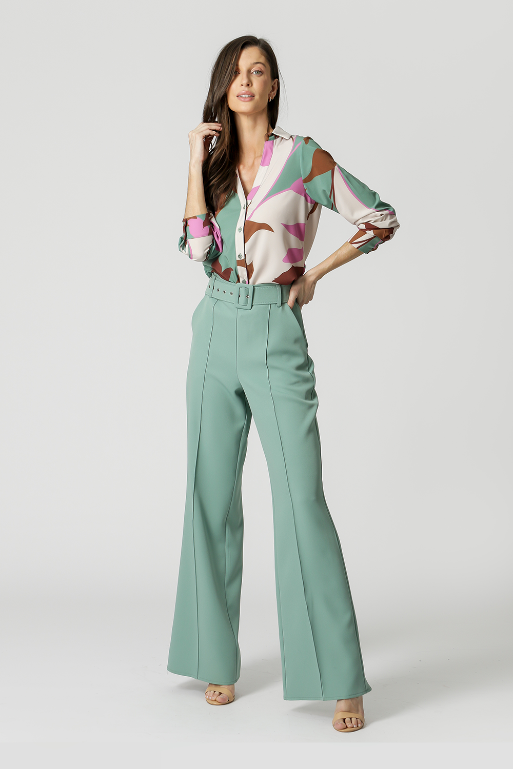 • Camisa Decote V Estampada - VERDE CLARO 1206