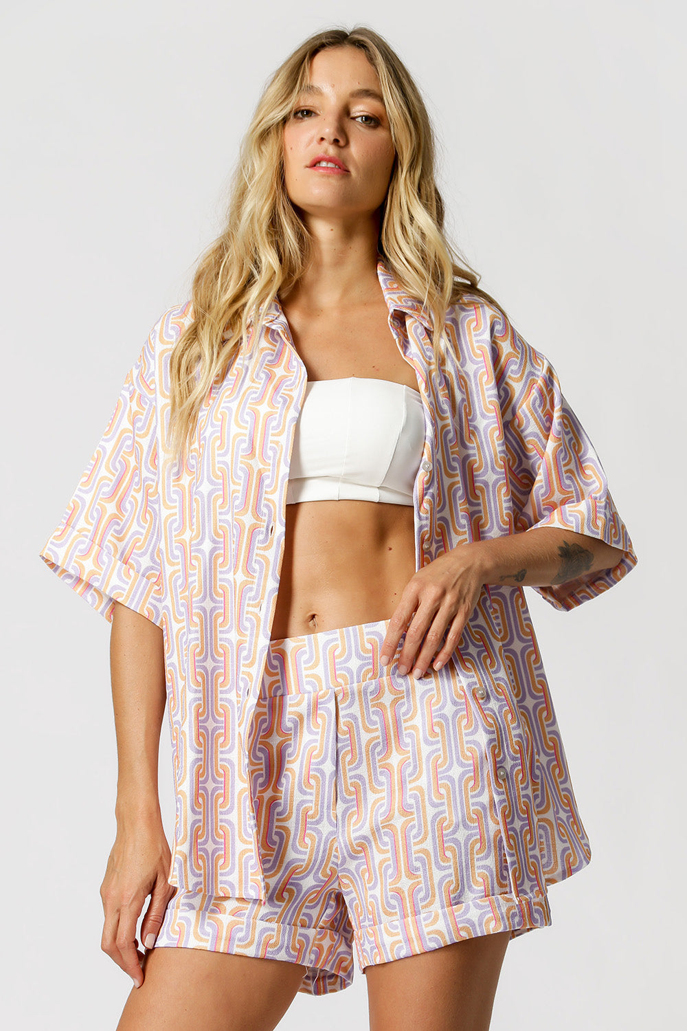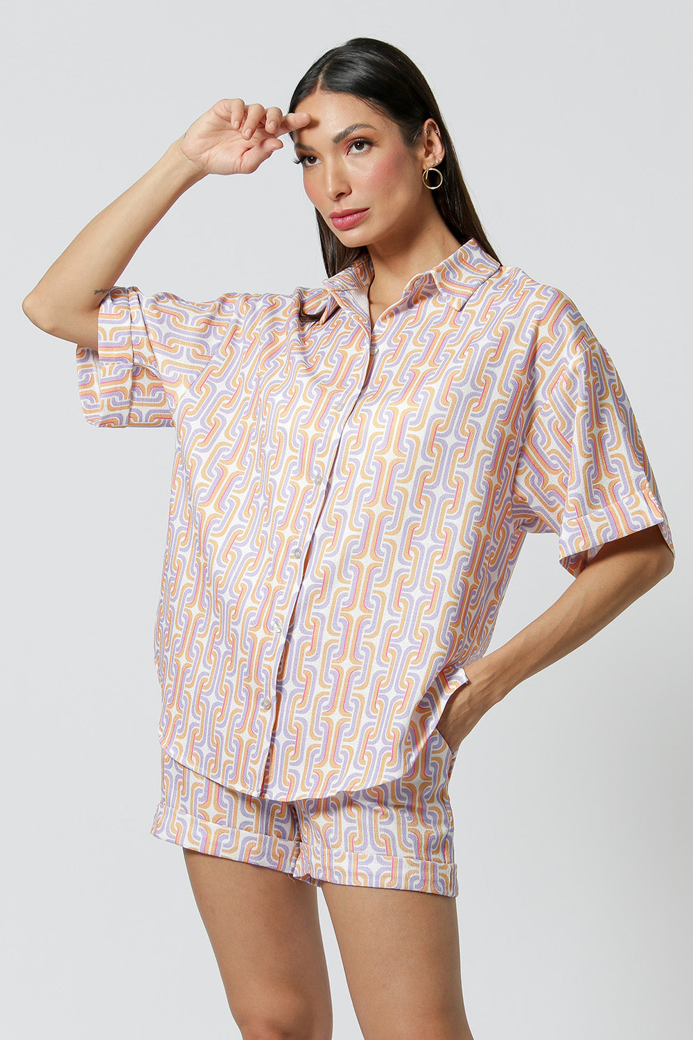 Camisa estampada com shape despojado, feito em tecido texturizado como um linho. Uma peça leve e flúida para um look casual.