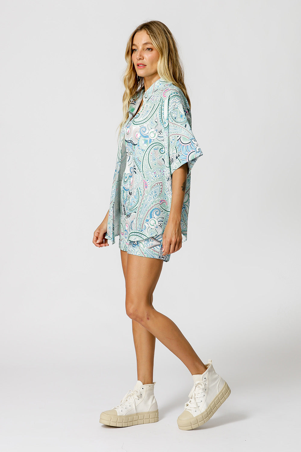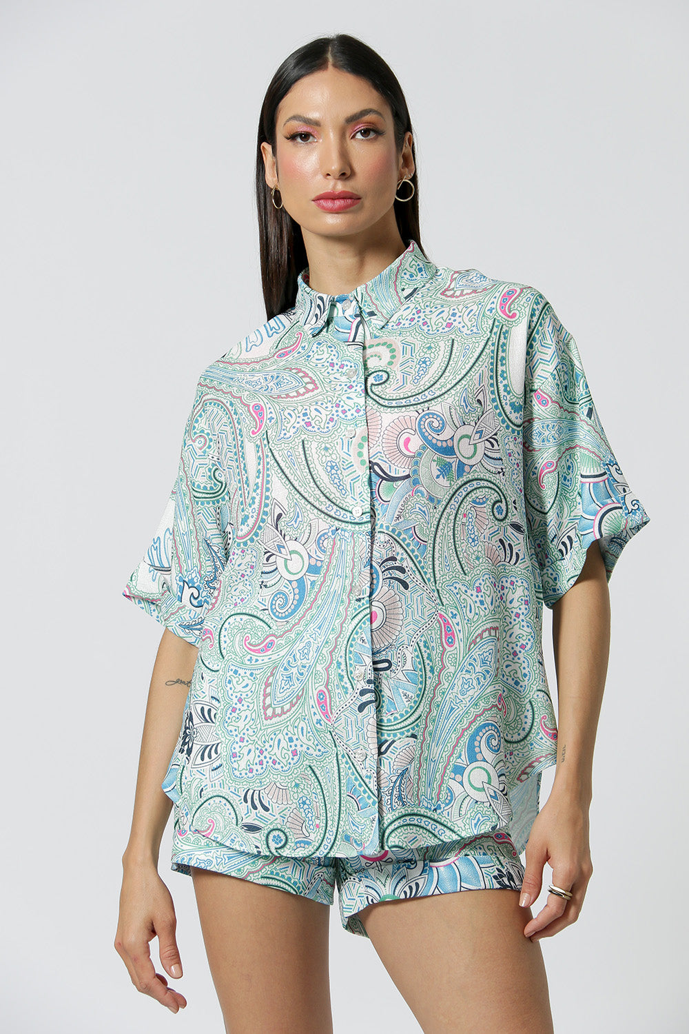 Camisa estampada com shape despojado, feito em tecido texturizado como um linho. Uma peça leve e flúida para um look casual.