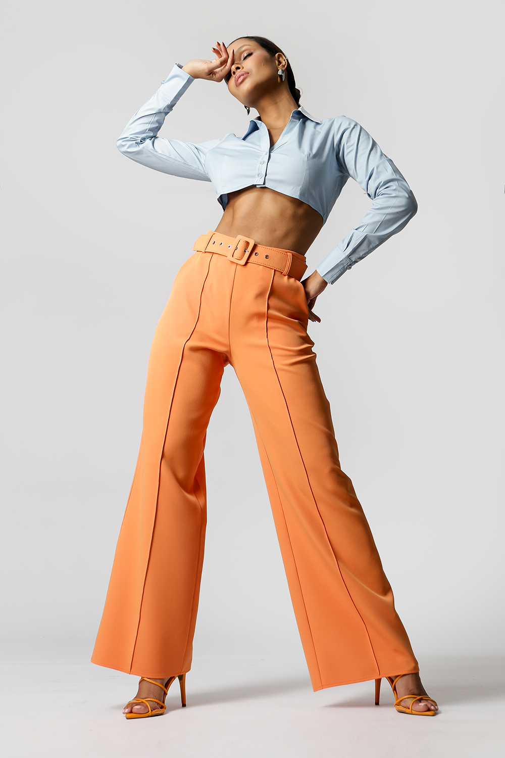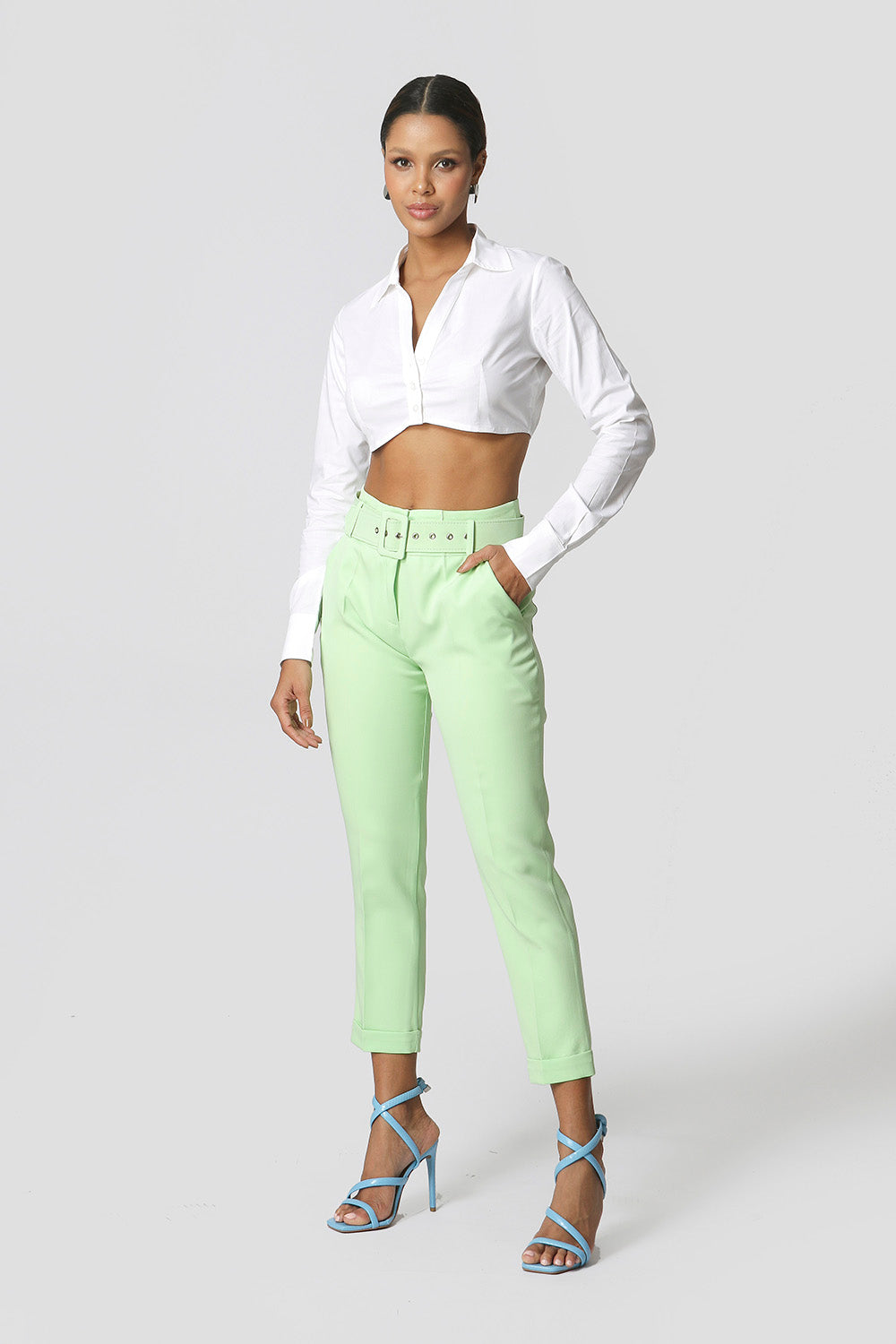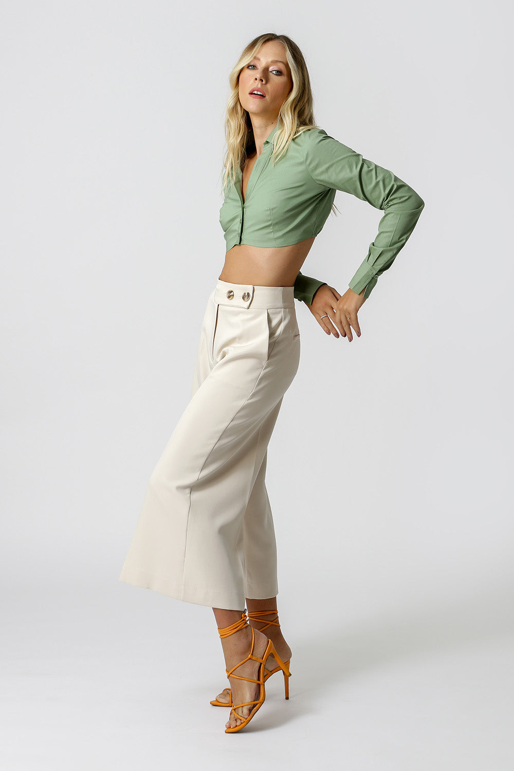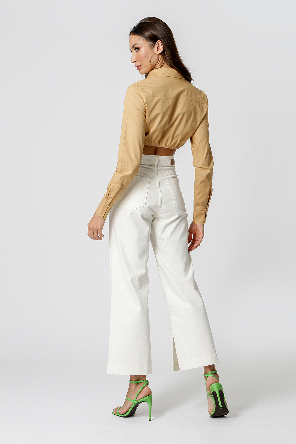 Camisa com shape cropped, manga longa e detalhe no punho. Peça feita em tricoline. Peça fashionista, que vai dar um UP no seu look.
