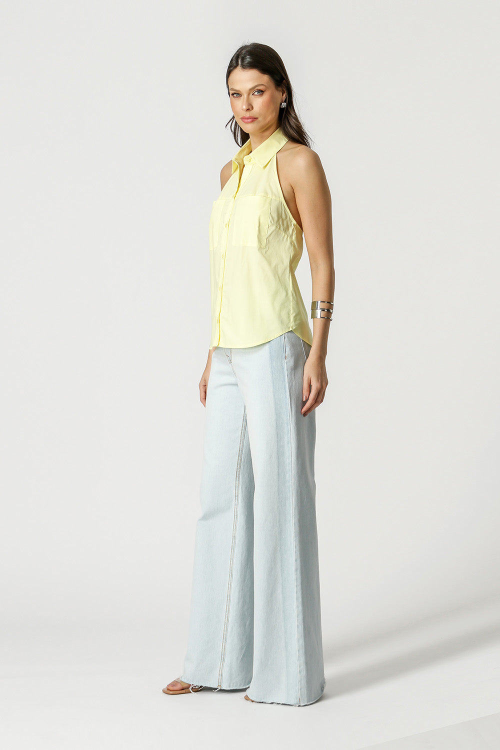 Camisa regata frente única feita em tricoline. Possui elástico nas costas e abotoamento frontal. Peça fashionista, que vai dar um UP no seu look!