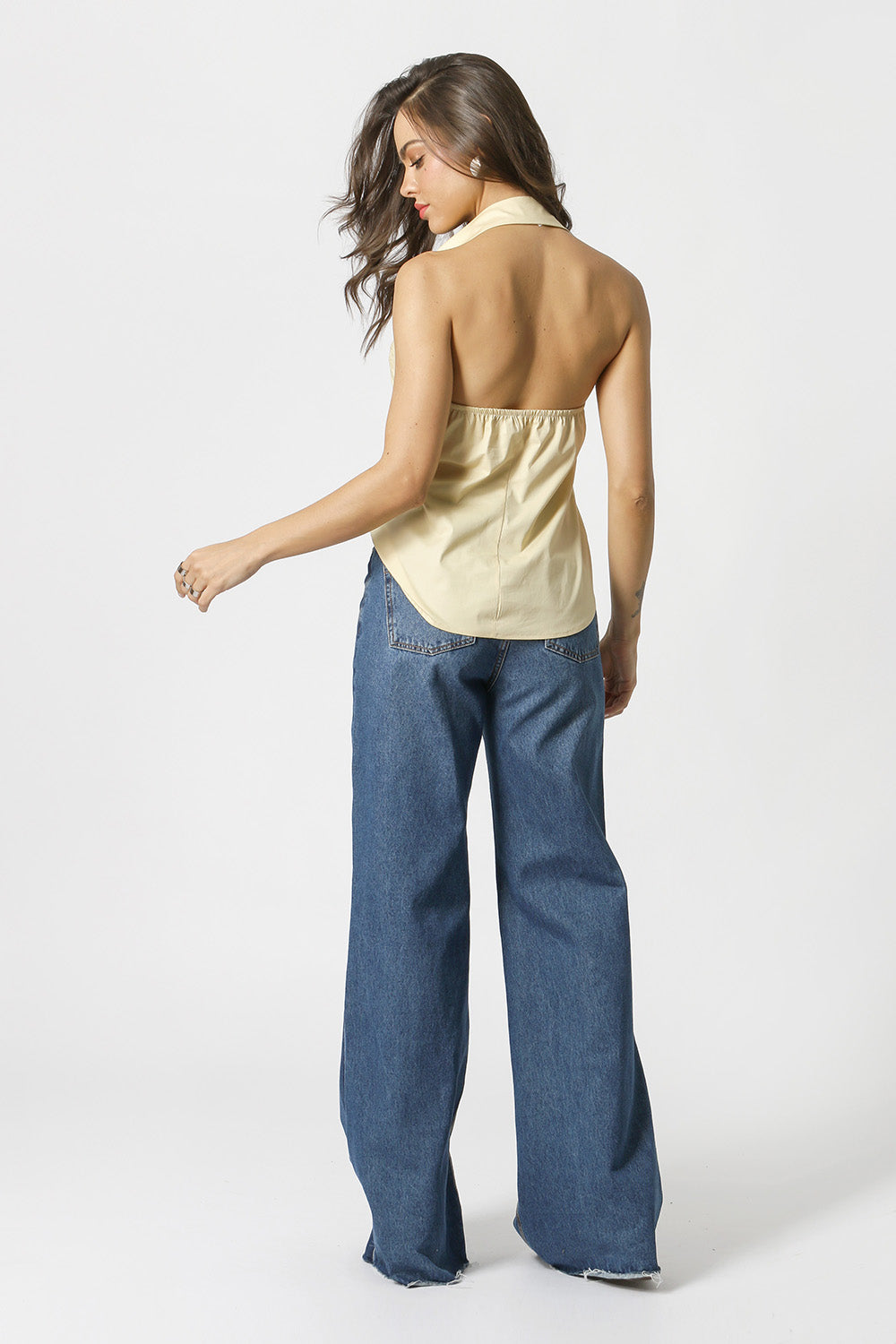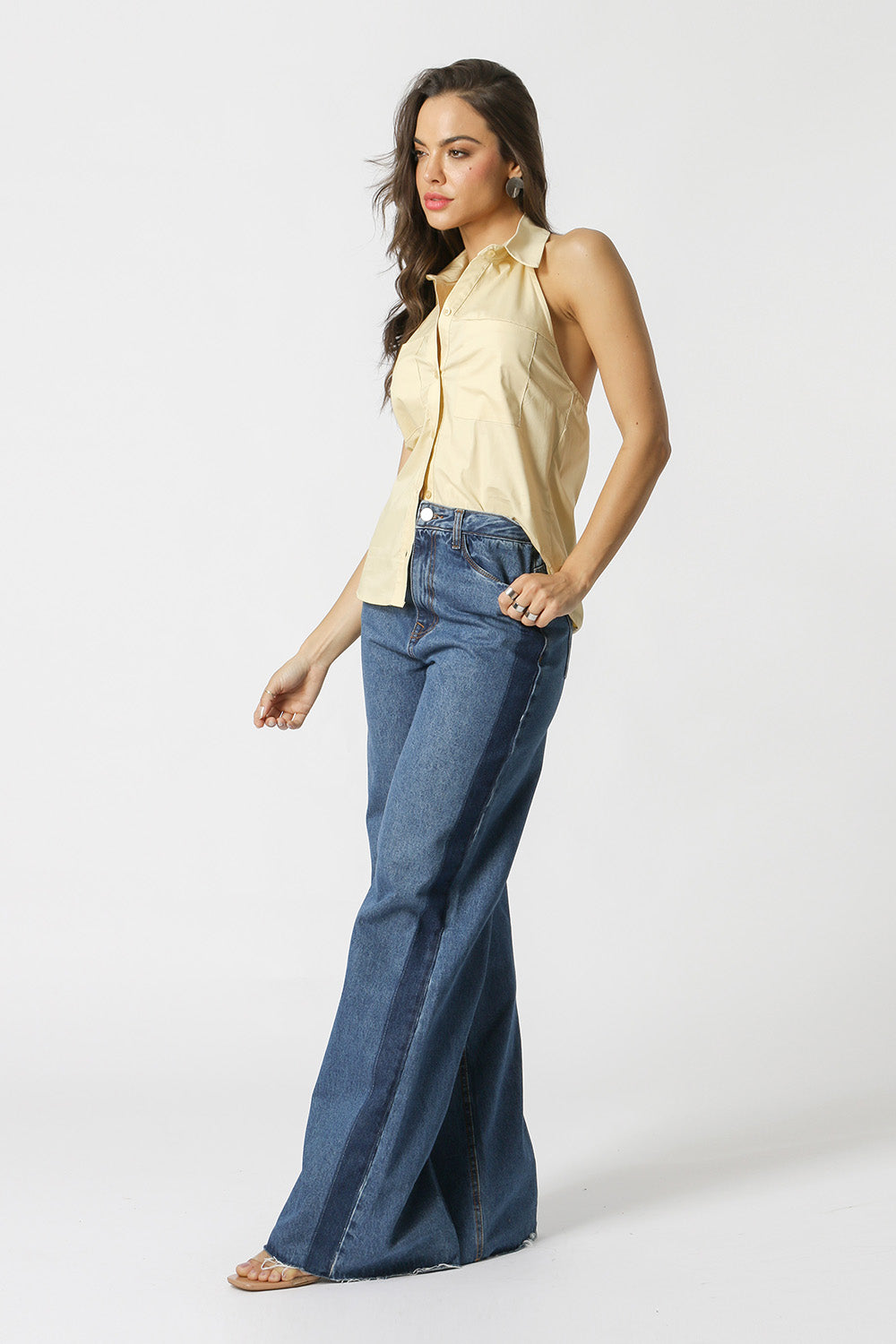 Camisa regata frente única feita em tricoline. Possui elástico nas costas e abotoamento frontal. Peça fashionista, que vai dar um UP no seu look!