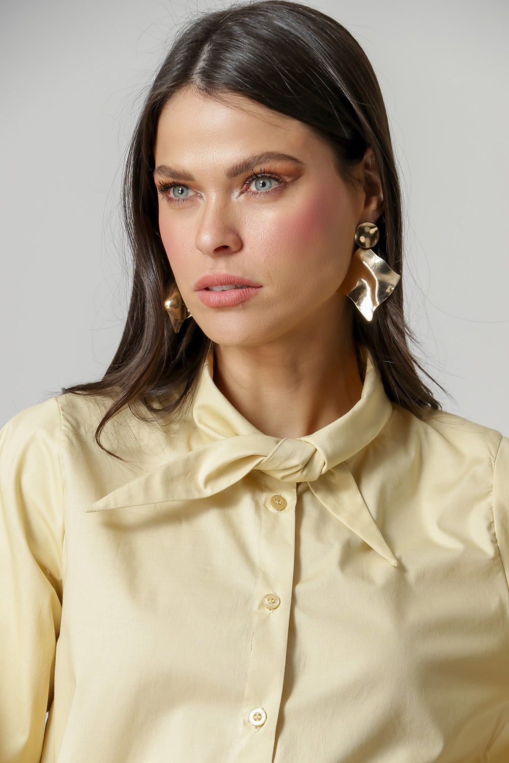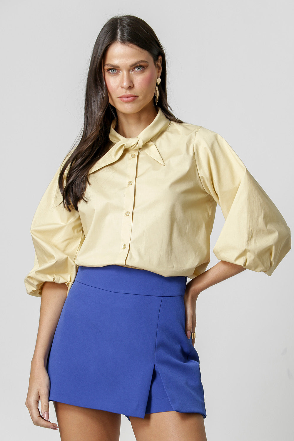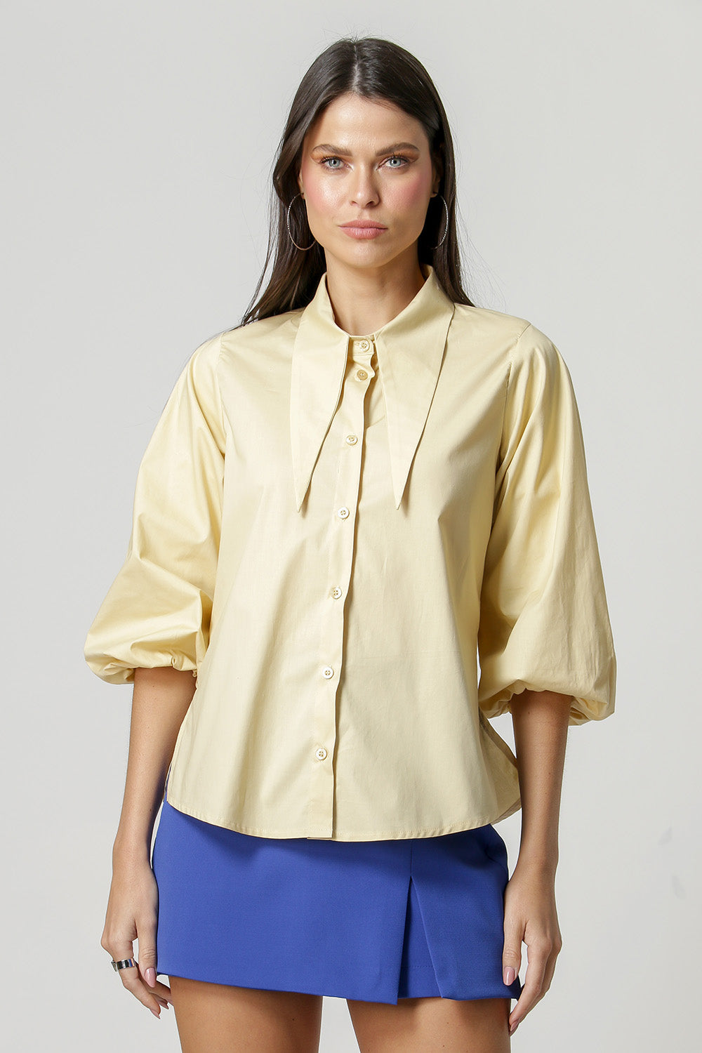 Camisa feita em tricoline, gola diferenciada e manga balonê. Peça perfeita para montar um look mega fashionista para esse verão!