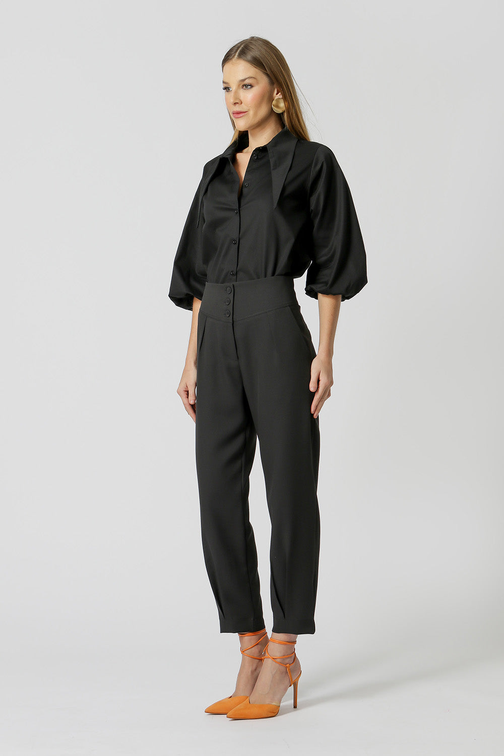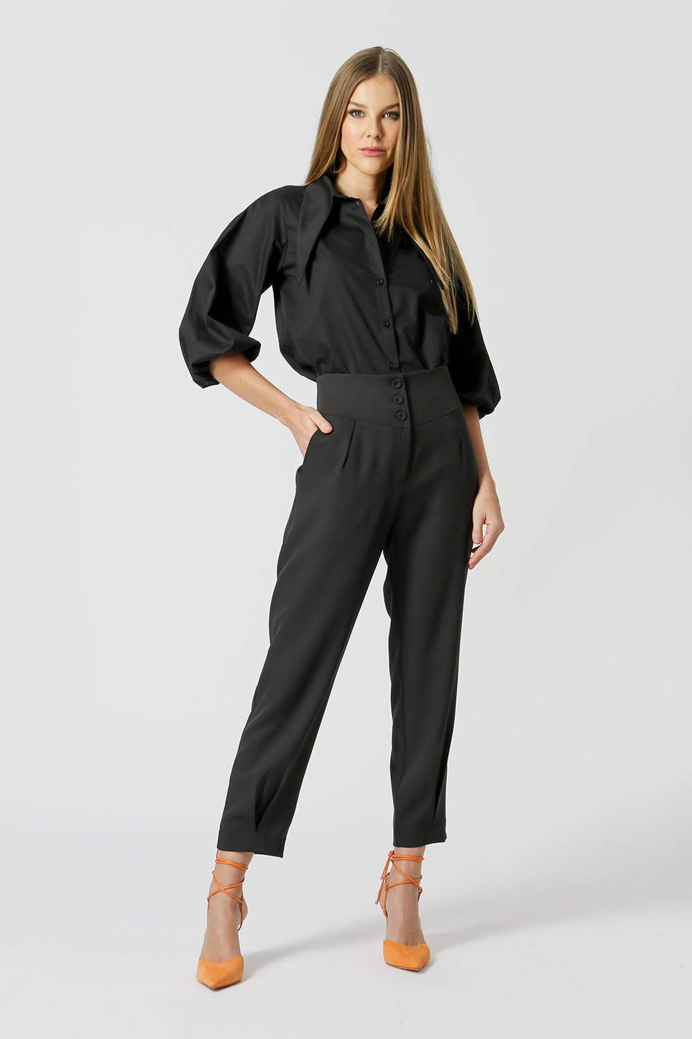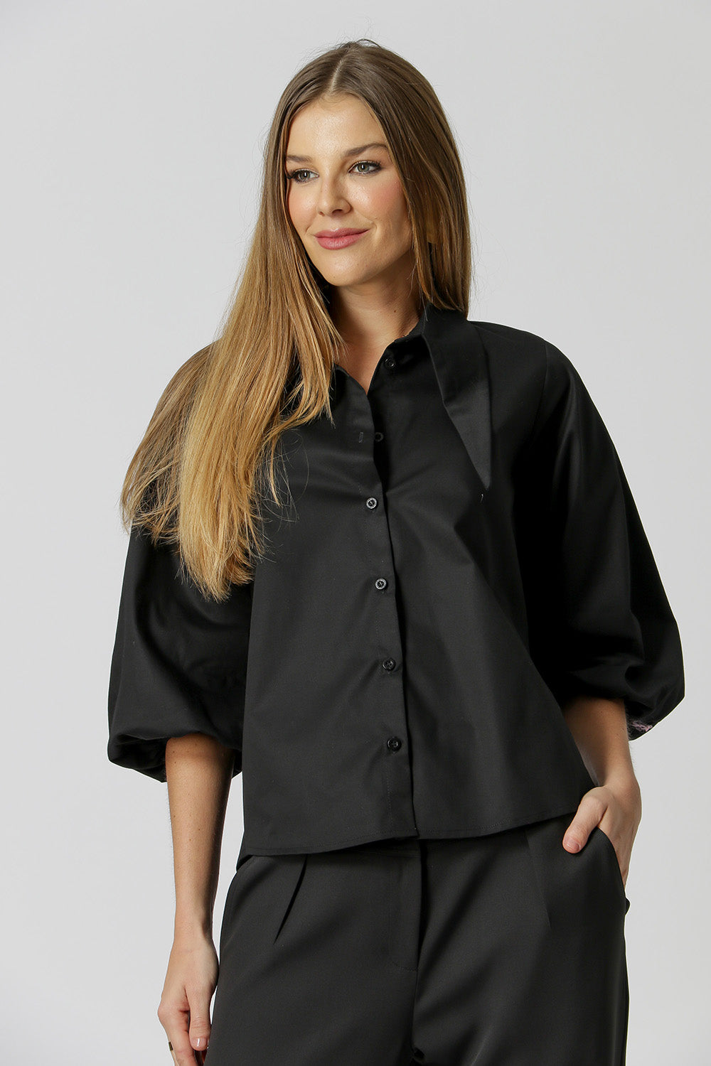 Camisa feita em tricoline, gola diferenciada e manga balonê. Peça perfeita para montar um look mega fashionista para esse verão!