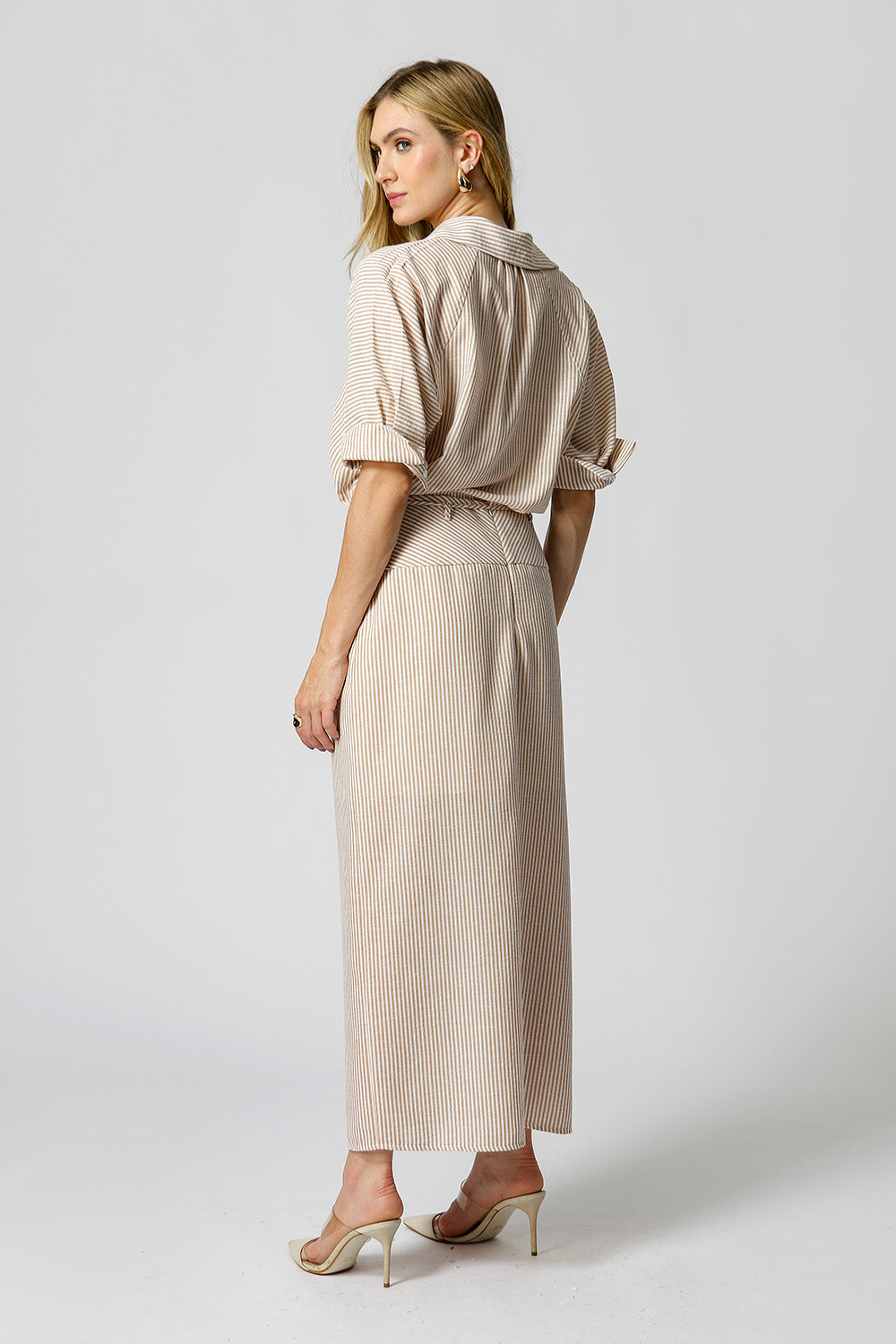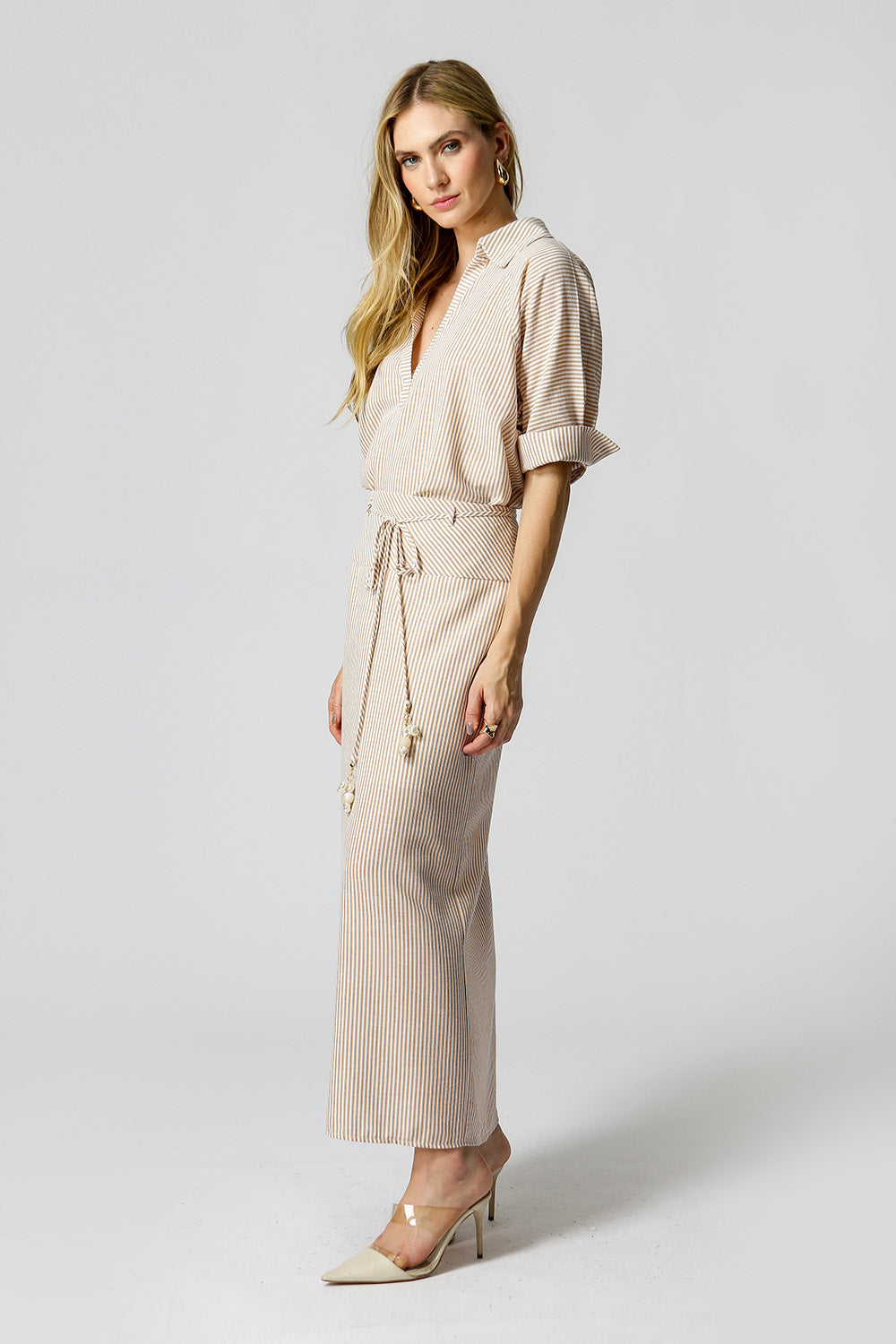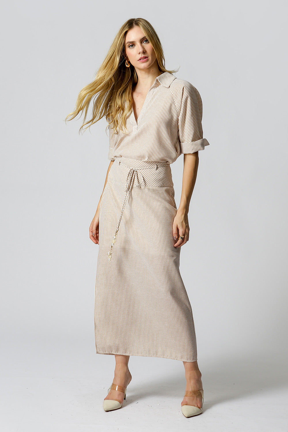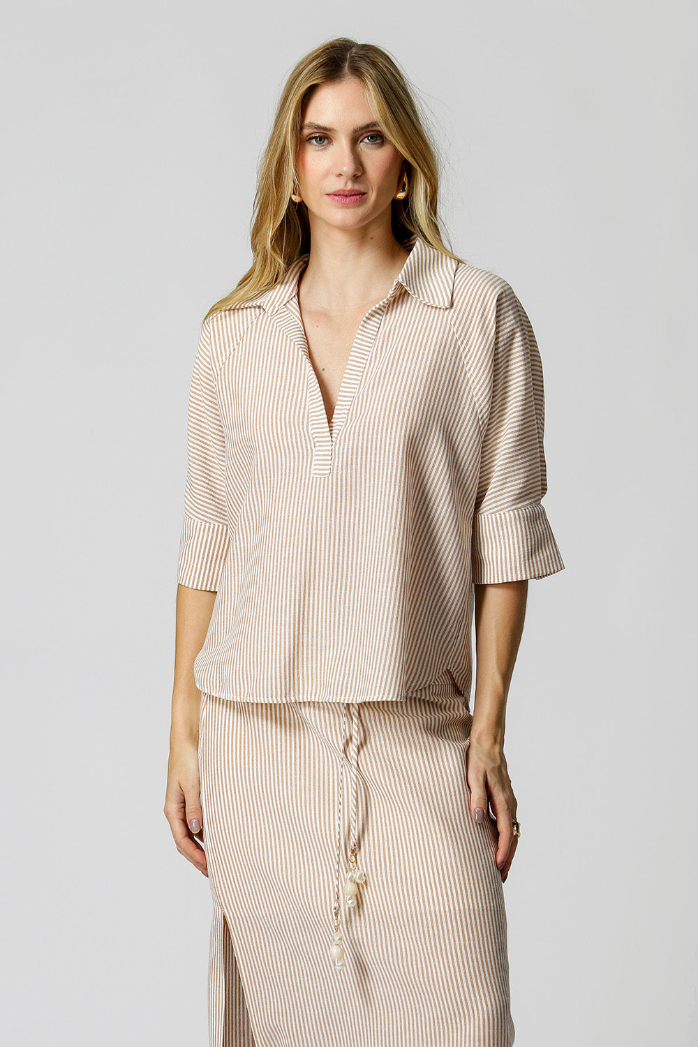 • Camisa Linho Listrada Manga 3/4 - CASTOR 90152