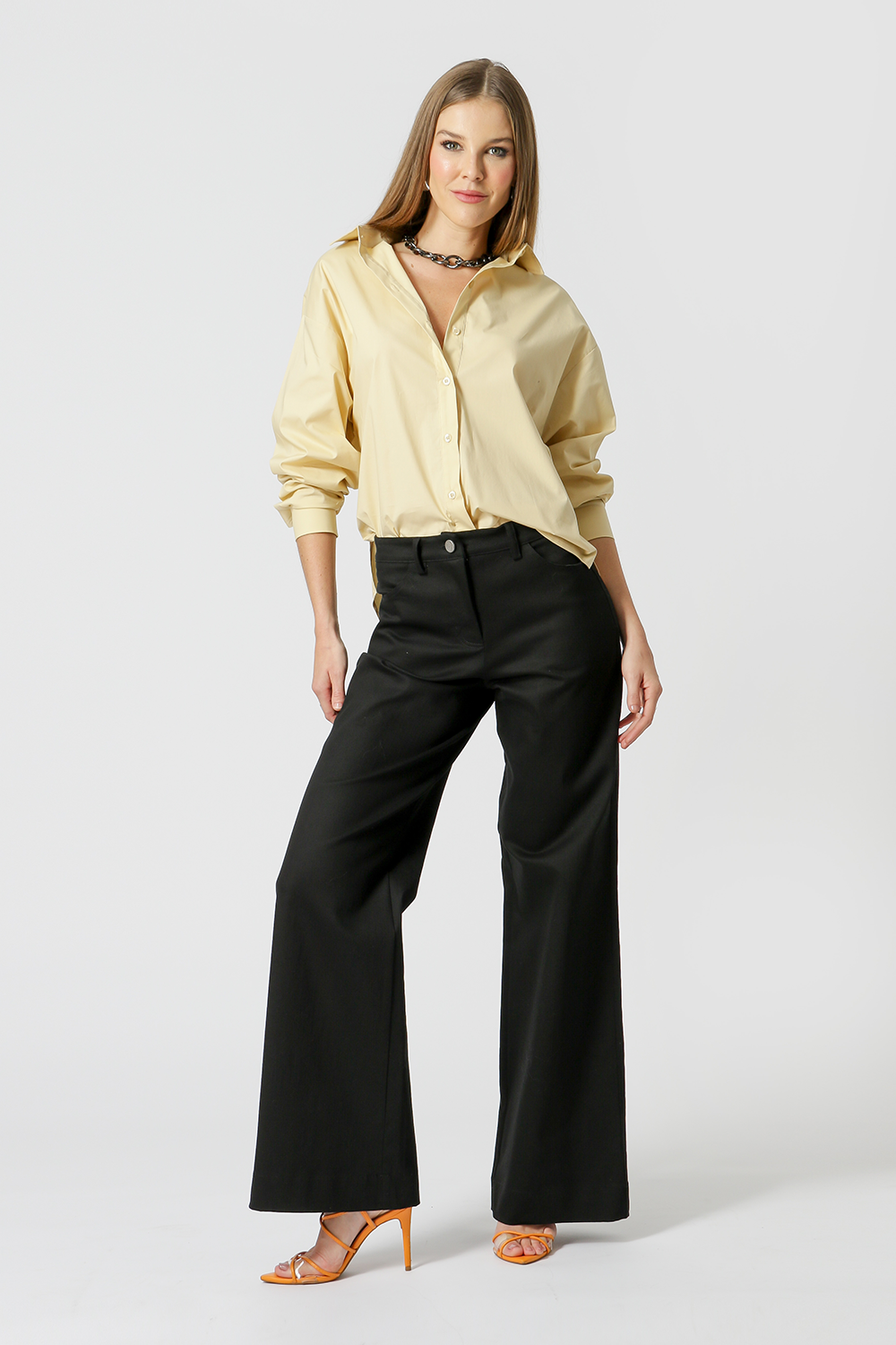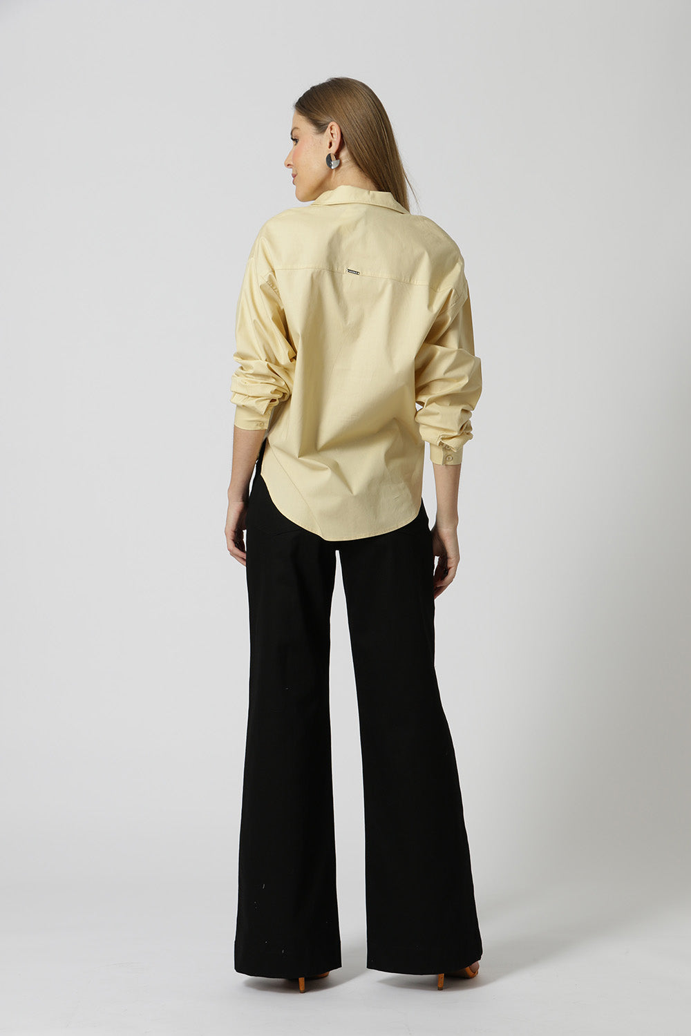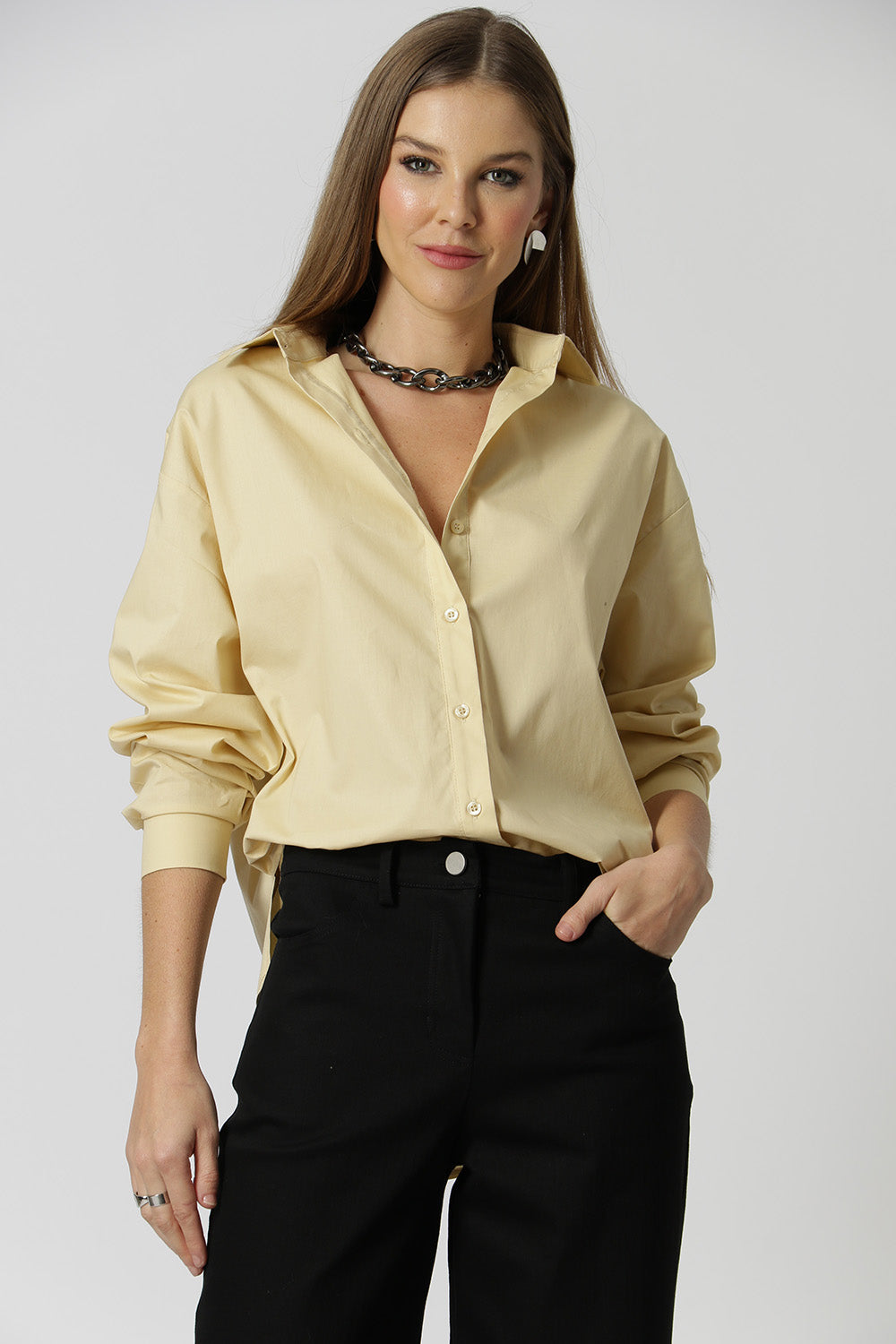 A peça possui modelagem oversized que confere caimento solto ao corpo, manga longa e fenda lateral. Camisa feita em tricoline, super estilosa e versátil.