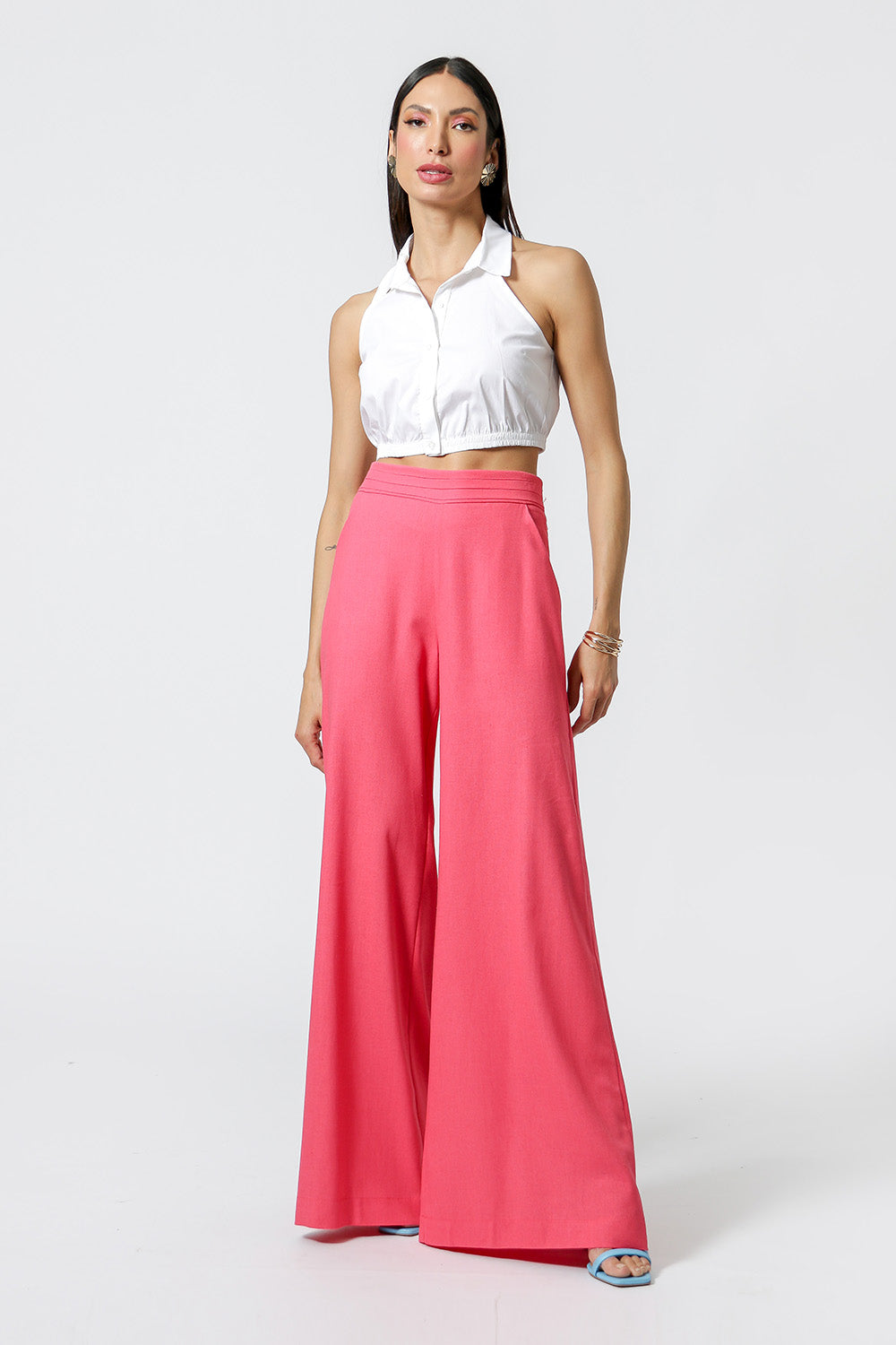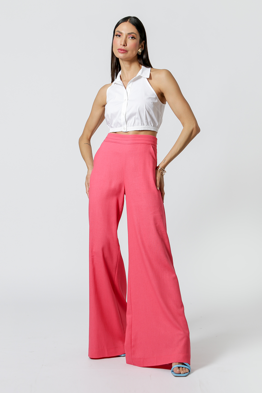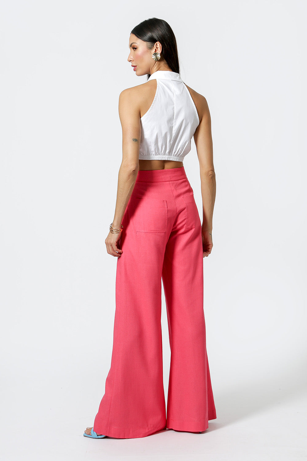 Camisa regata com comprimento cropped e detalhe de elástico na barra. Abotoamento frontal. Peça feita em tricoline. Peça fashionista, que vai dar um UP no seu look!