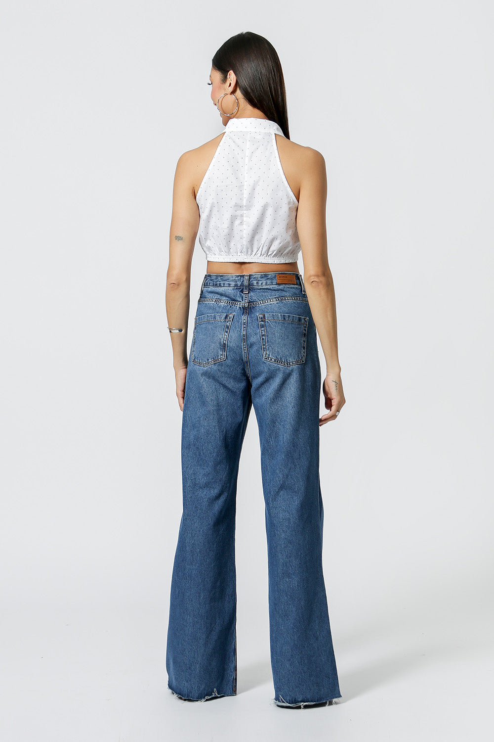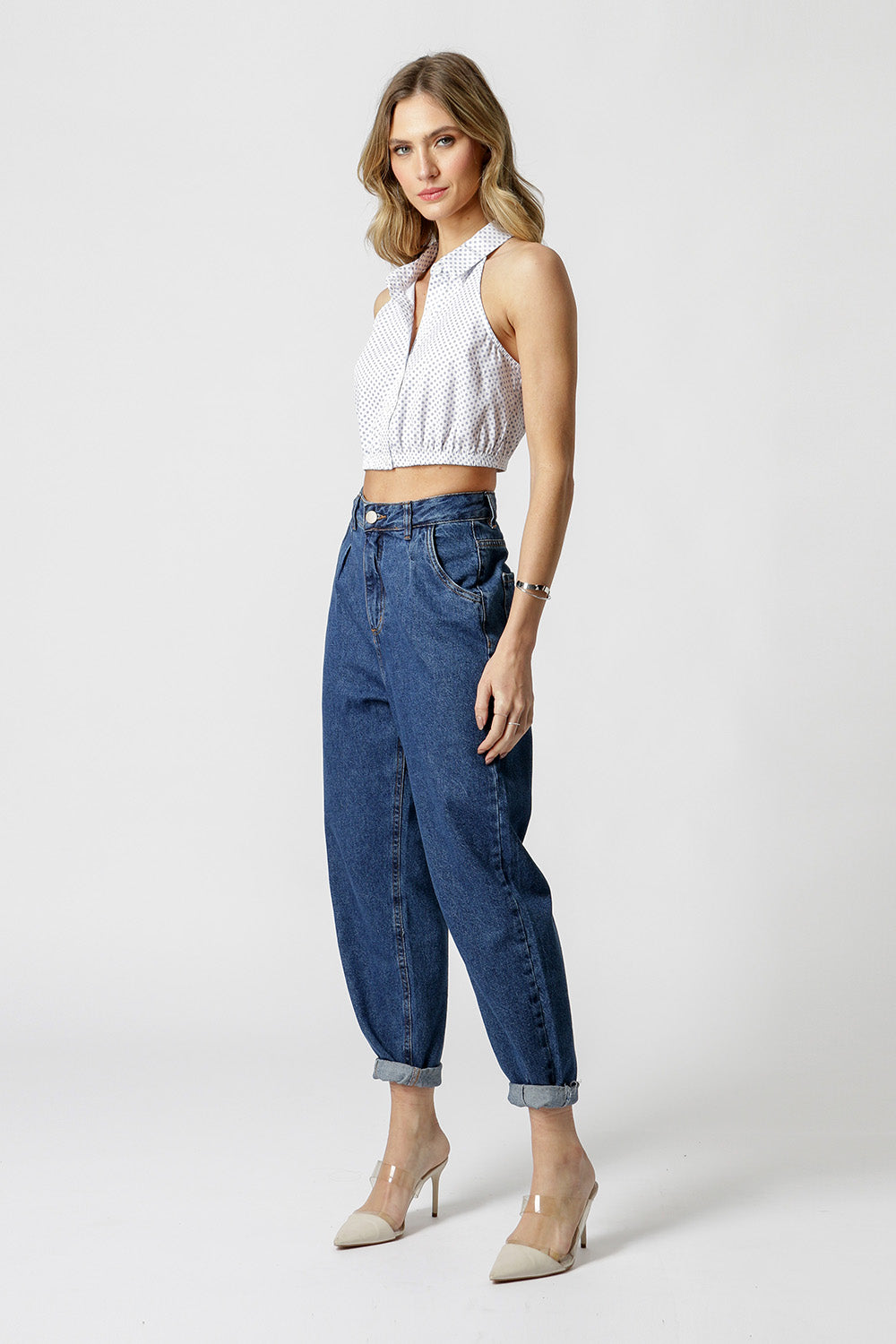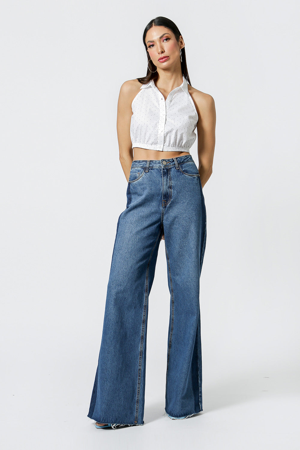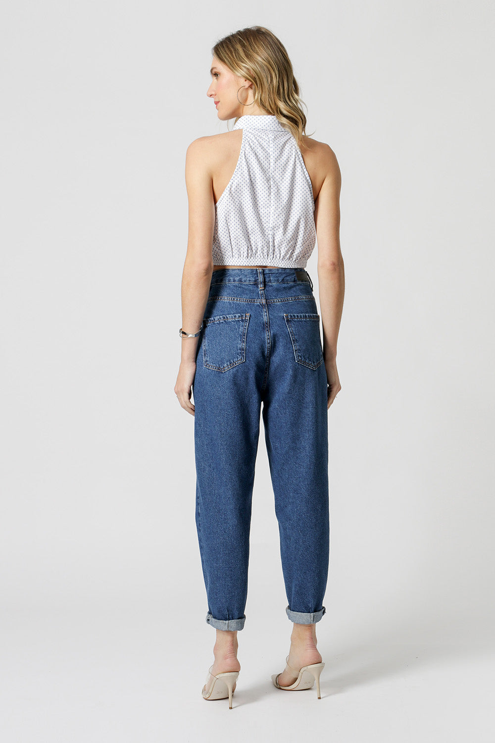 Camisa regata com comprimento cropped e detalhe de elástico na barra. Abotoamento frontal. Peça feita em tricoline estampada. Peça despojada ideal para um look ideal!