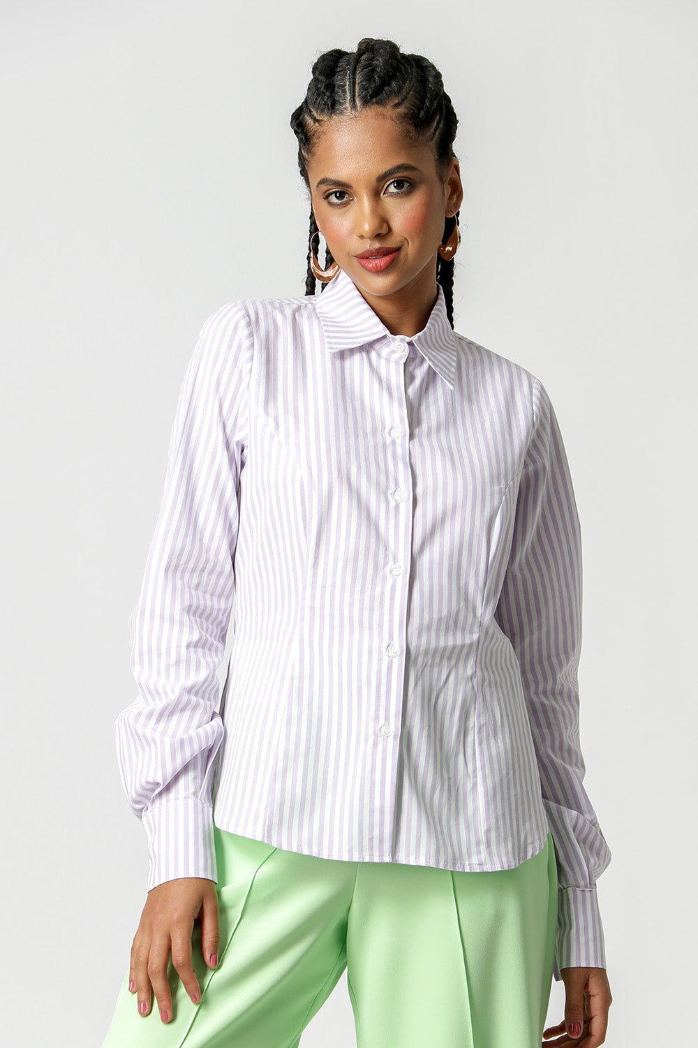 Camisa confeccionada em tricoline estampada. Possui abertura frontal com botões, punho largo com abertura de dois botões, shape ajustado ao corpo. Peça ideal para looks de trabalho, e também para looks menos formais.