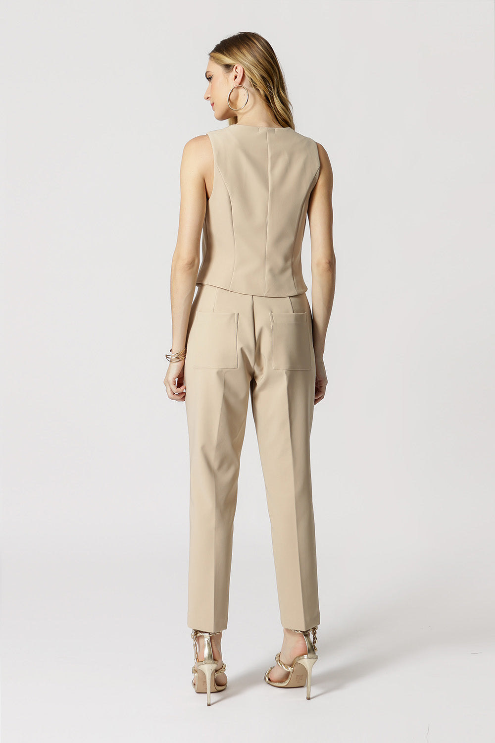 Colete feito em alfaiataria com shape cropped. Uma peça perfeita para deixar seu visual moderno e elegante para um look work e casual.