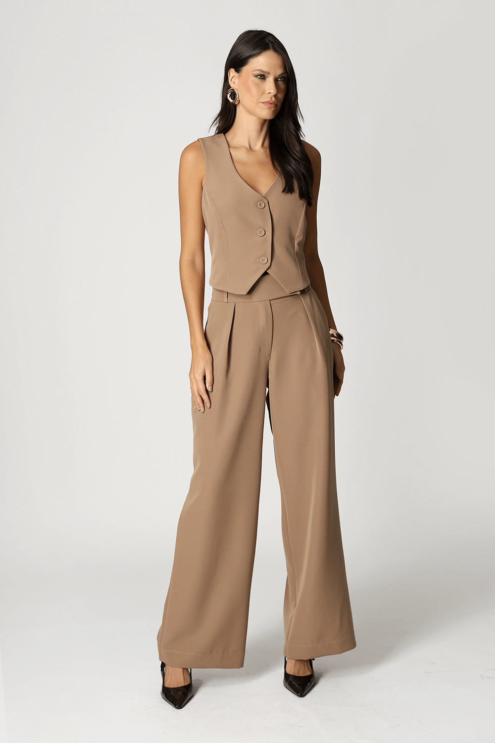 Colete feito em alfaiataria com shape cropped. Uma peça perfeita para deixar seu visual moderno e elegante para um look work e casual.
