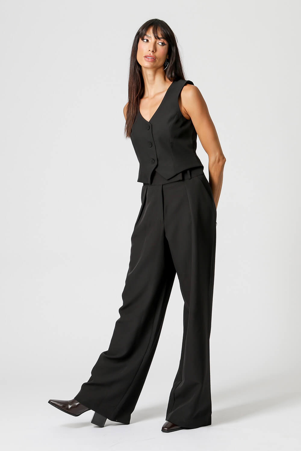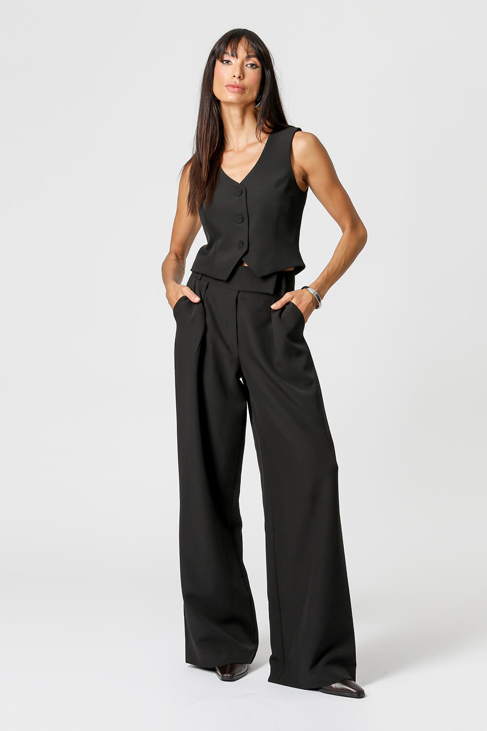 Colete feito em alfaiataria com shape cropped. Uma peça perfeita para deixar seu visual moderno e elegante para um look work e casual.