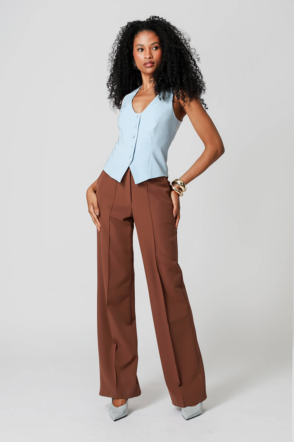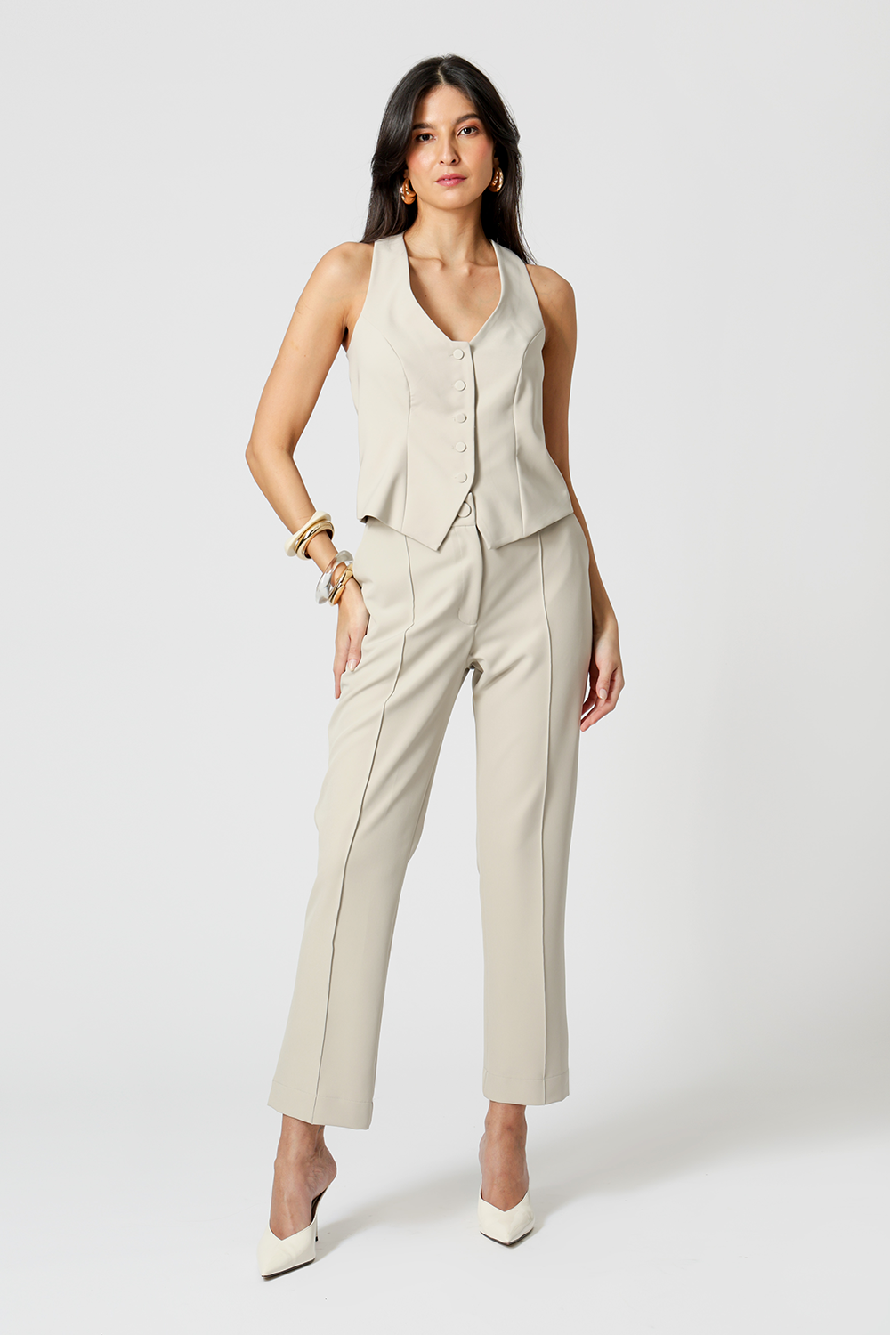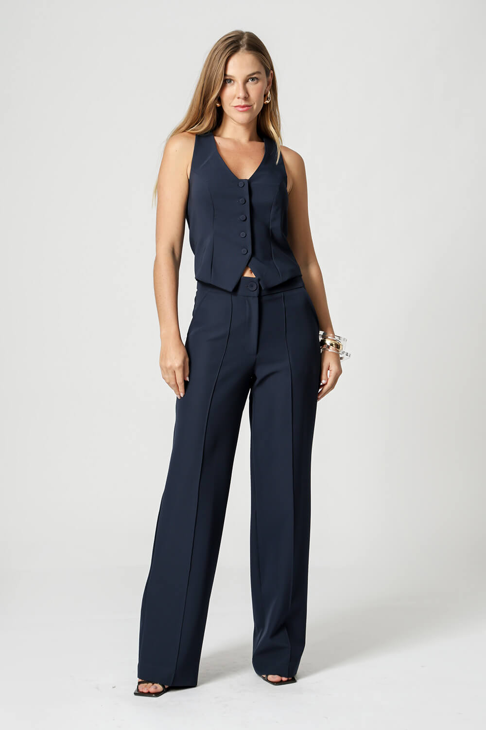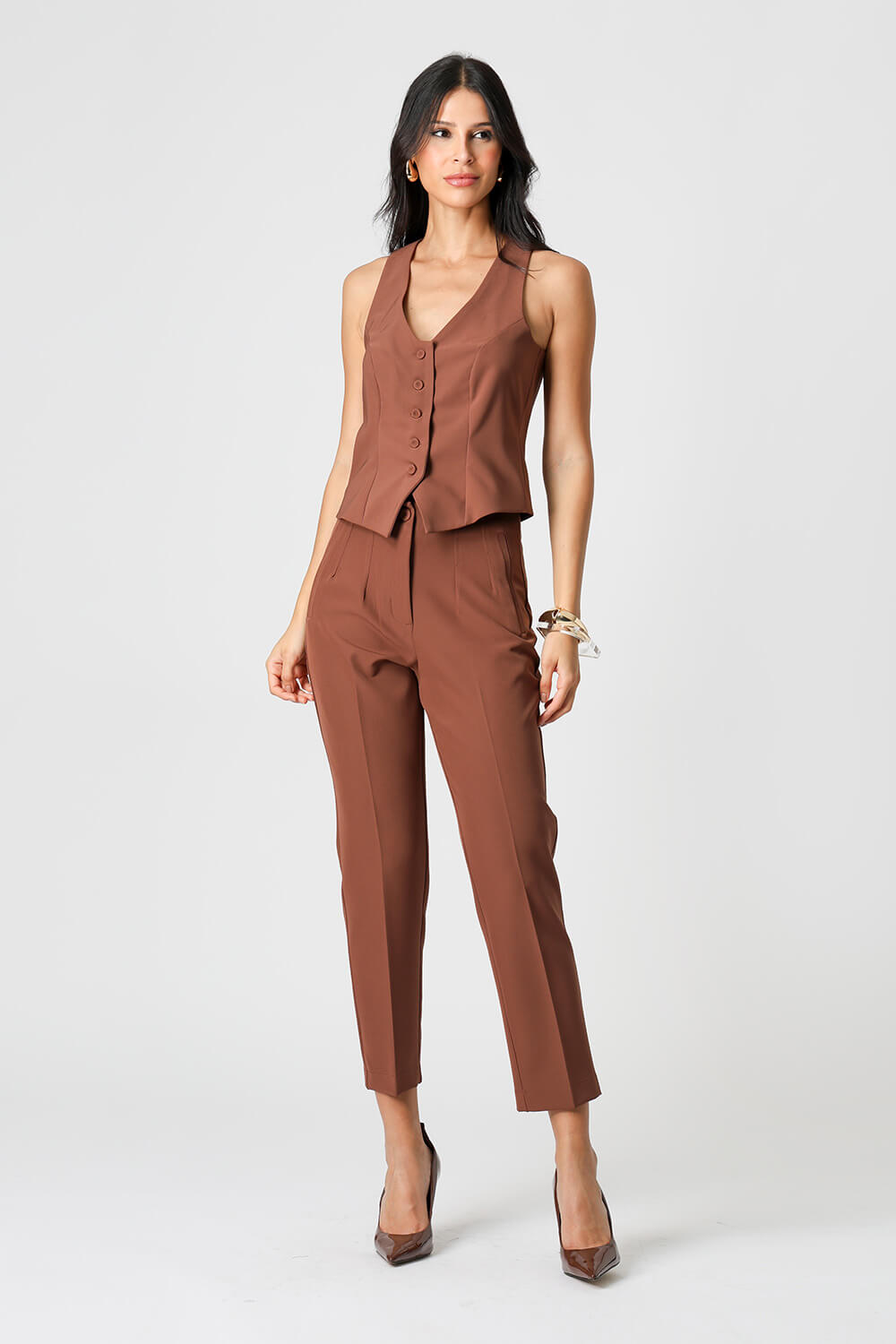 Colete em alfaiataria com botões. Uma peça que proporciona conforto, praticidade e elegância no seu look e que não pode faltar em seu guarda-roupas.