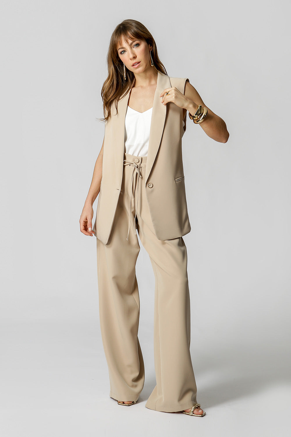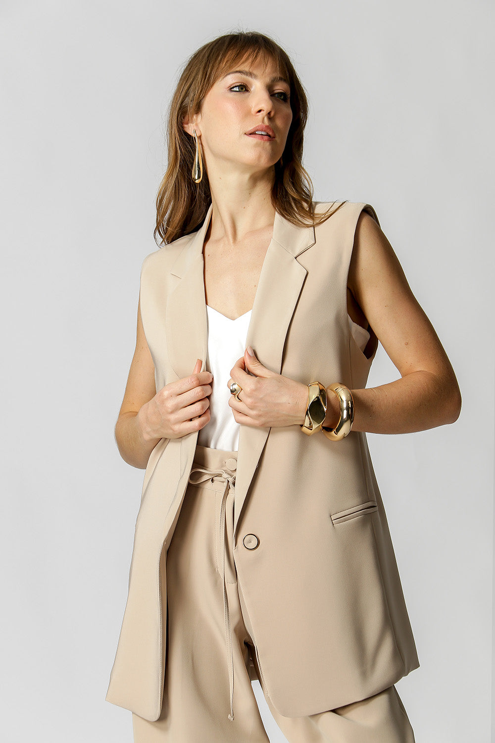 Colete Longline com botão em detalhe de metal e forrado do próprio tecido. Uma peça confeccionada em tecido alfaiataria, forrada. Modelo clássico e versátil que possibilita compor com vários looks.