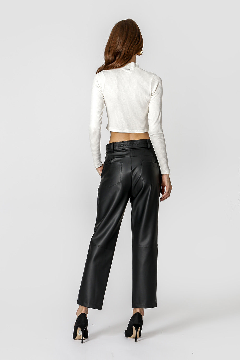 Cropped confeccionado em malha, com shape mais ajustado ao cropo, mangas longas e gola alta. É uma peça mais descolada, super versátil e fácil de compor com qualquer parte de baixo, desde de shortinhos até calças alfaiatadas ou de moletom. Uma super peça coringa pra ter no armário!