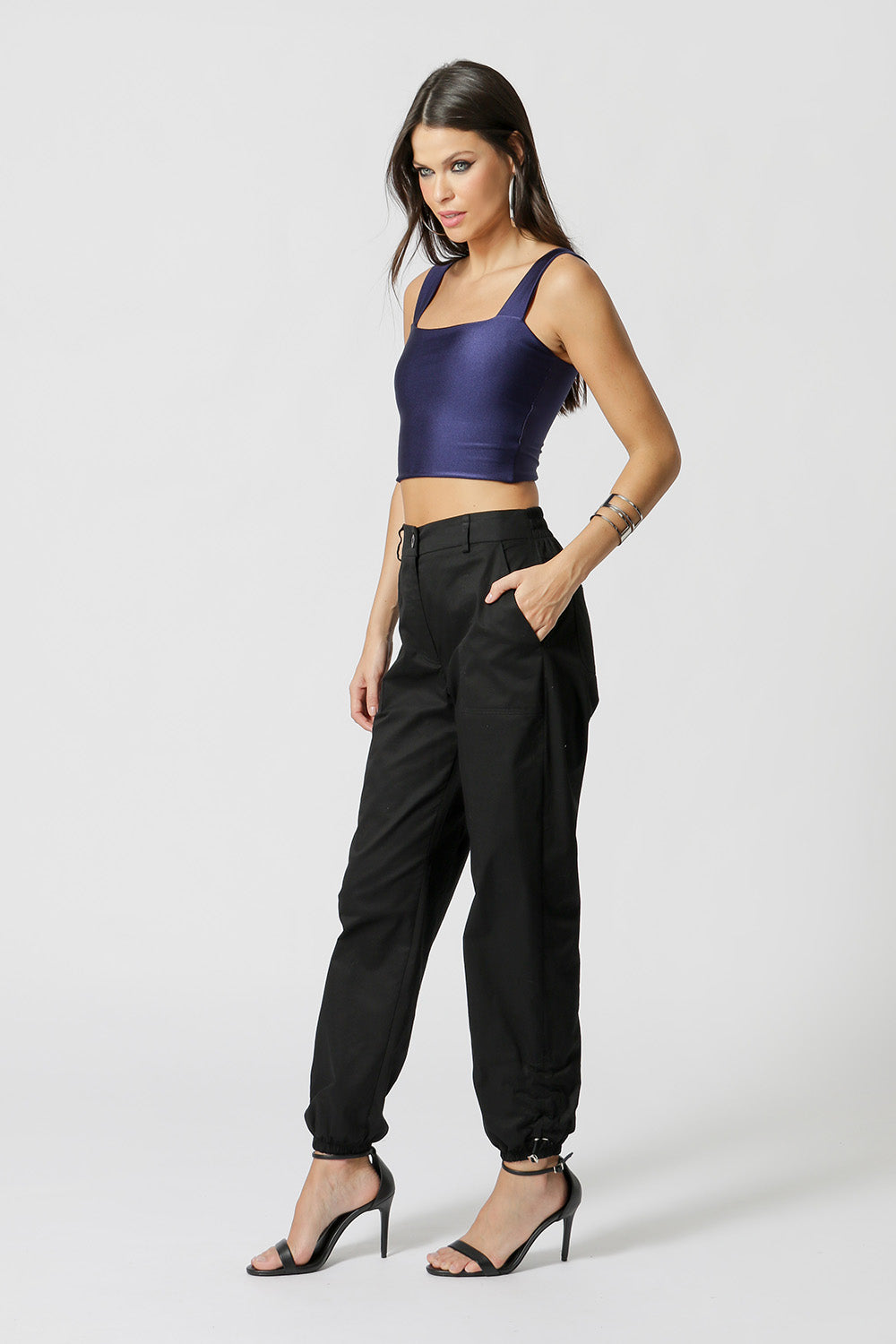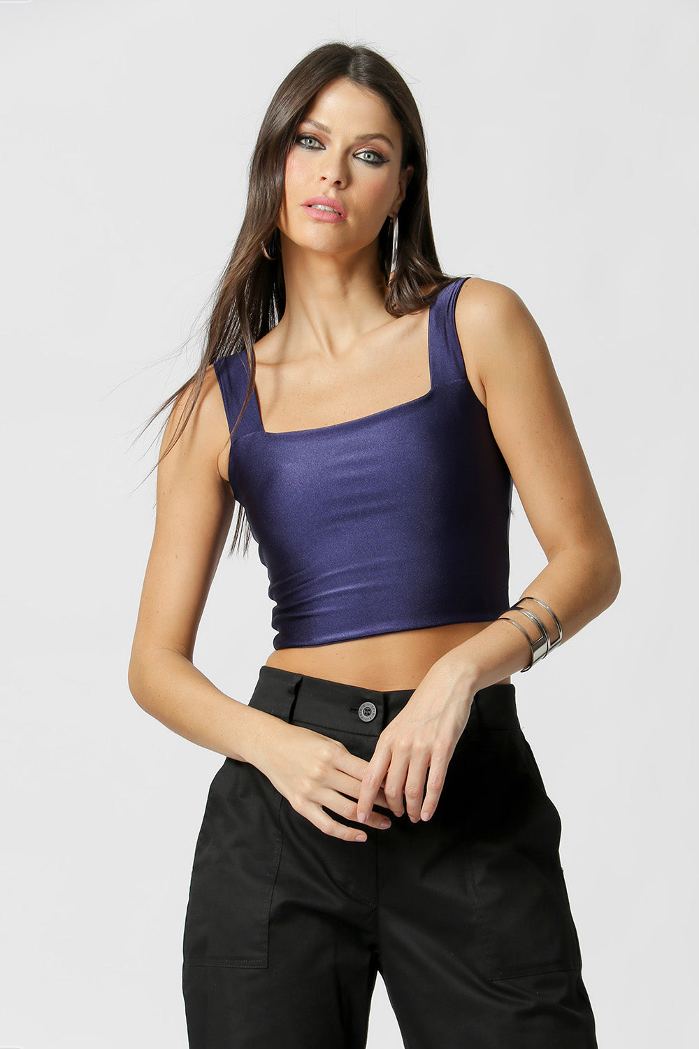 Cropped confeccionado em malha metalic, com modelagem justa e alças largas. O básico diferenciado que você precisa para compor seu look night!