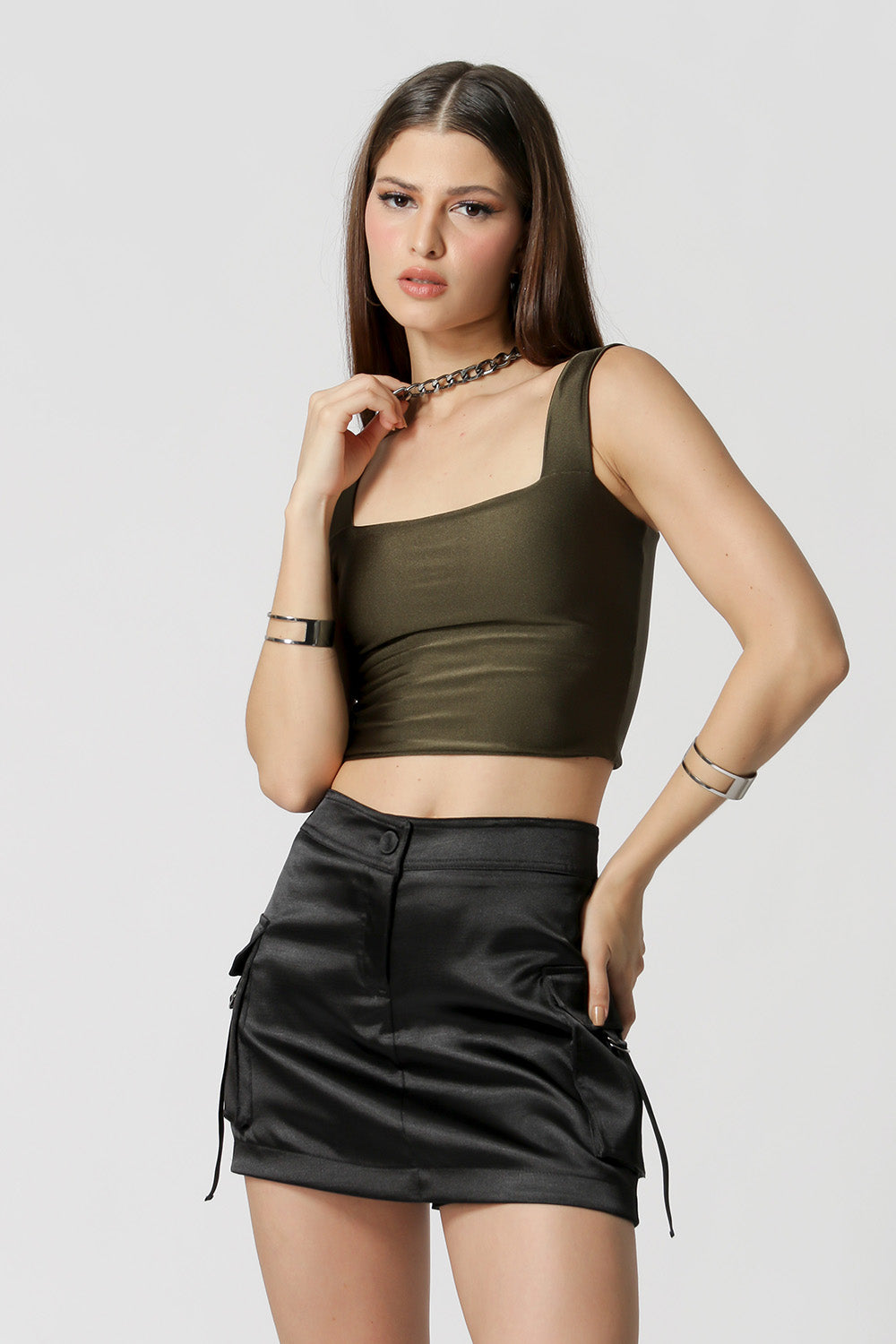 Cropped confeccionado em malha metalic, com modelagem justa e alças largas. O básico diferenciado que você precisa para compor seu look night!