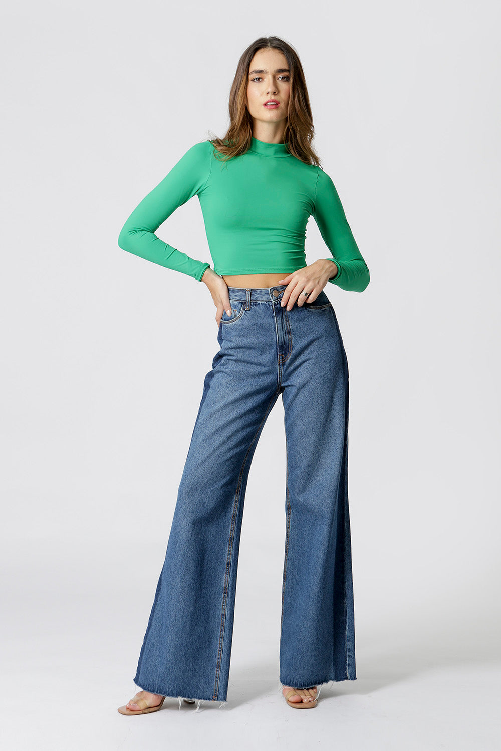 Cropped confeccionado em malha, com shape mais ajustado ao cropo, mangas longas e gola alta. É uma peça mais descolada, super versátil e fácil de compor com qualquer parte de baixo. Uma super peça coringa pra ter no armário!