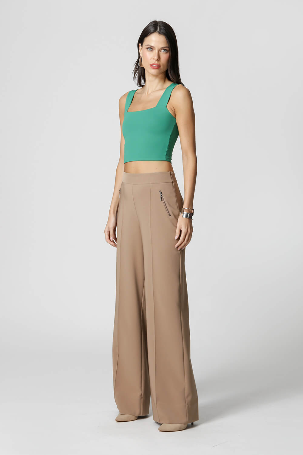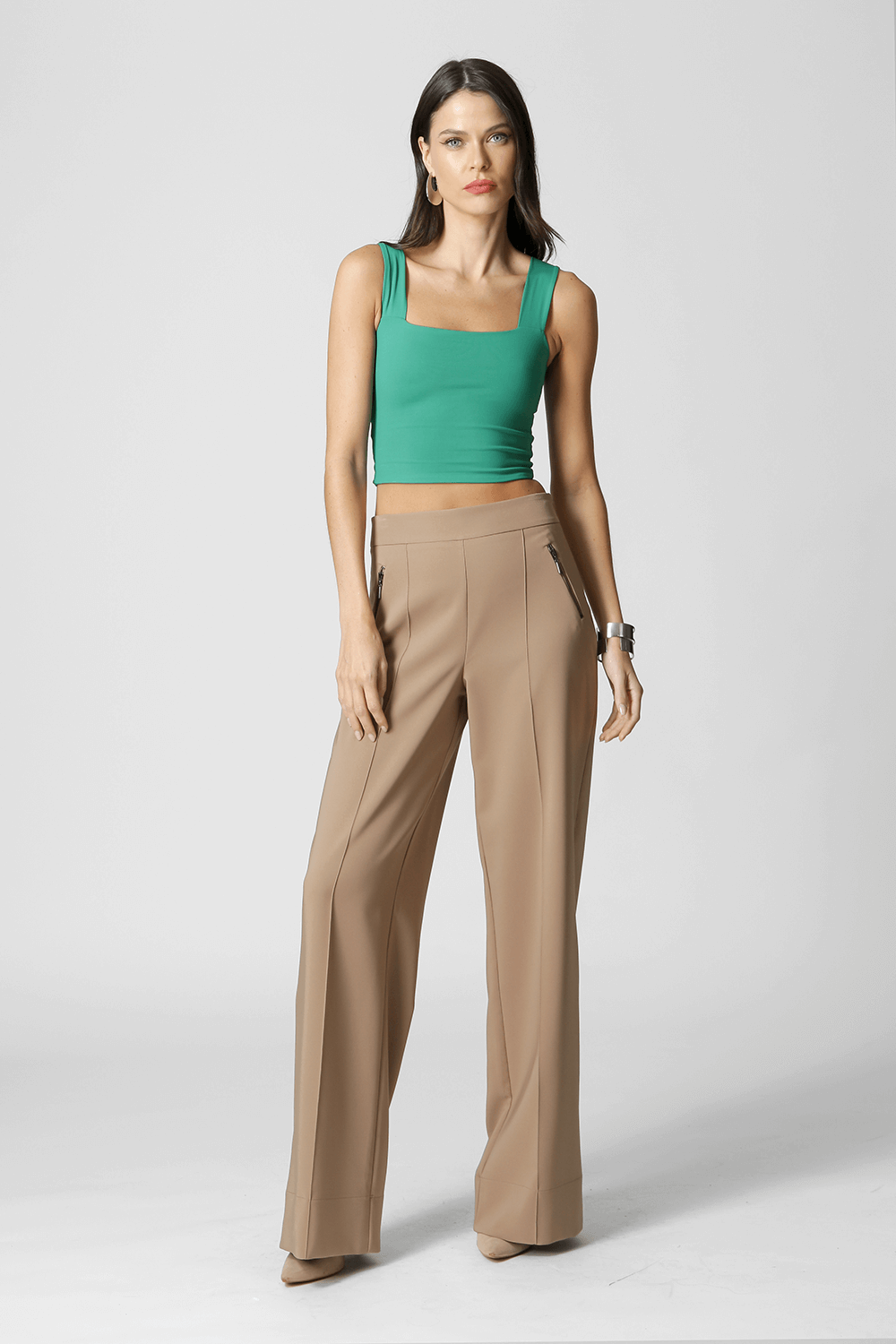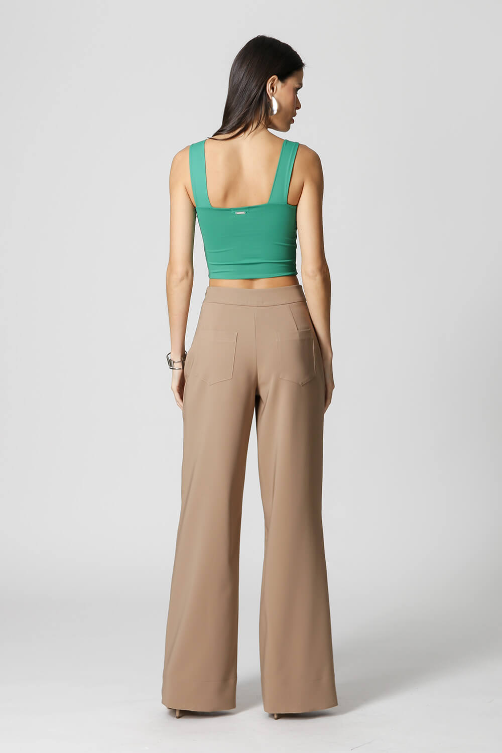 Cropped confeccionado em malha, com modelagem justa e alças largas. É uma peça básica que não pode faltar no seu guarda roupa.