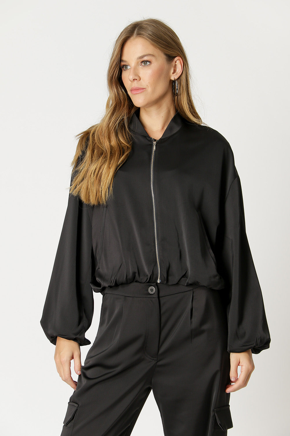 Jaqueta com shape amplo, manga e barra balonê. Trazendo um conforto e ao mesmo tempo estilo para arrasar no mood casual.