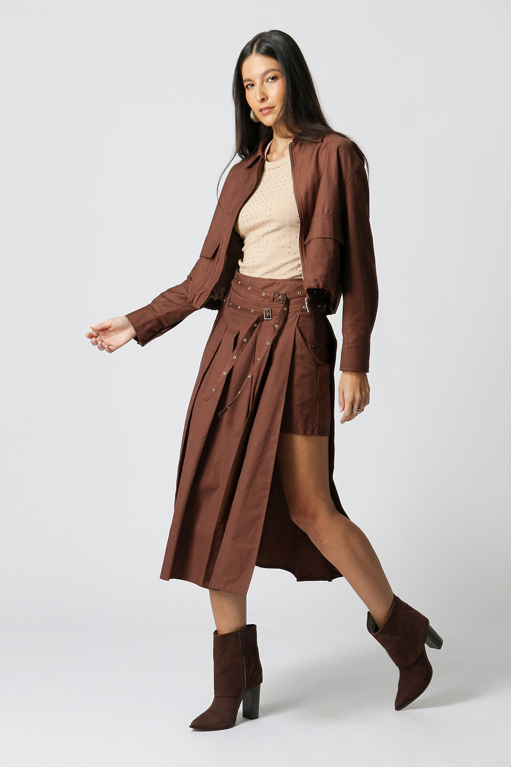 Jaqueta Bomber Com Bolsos Amplos - MARROM