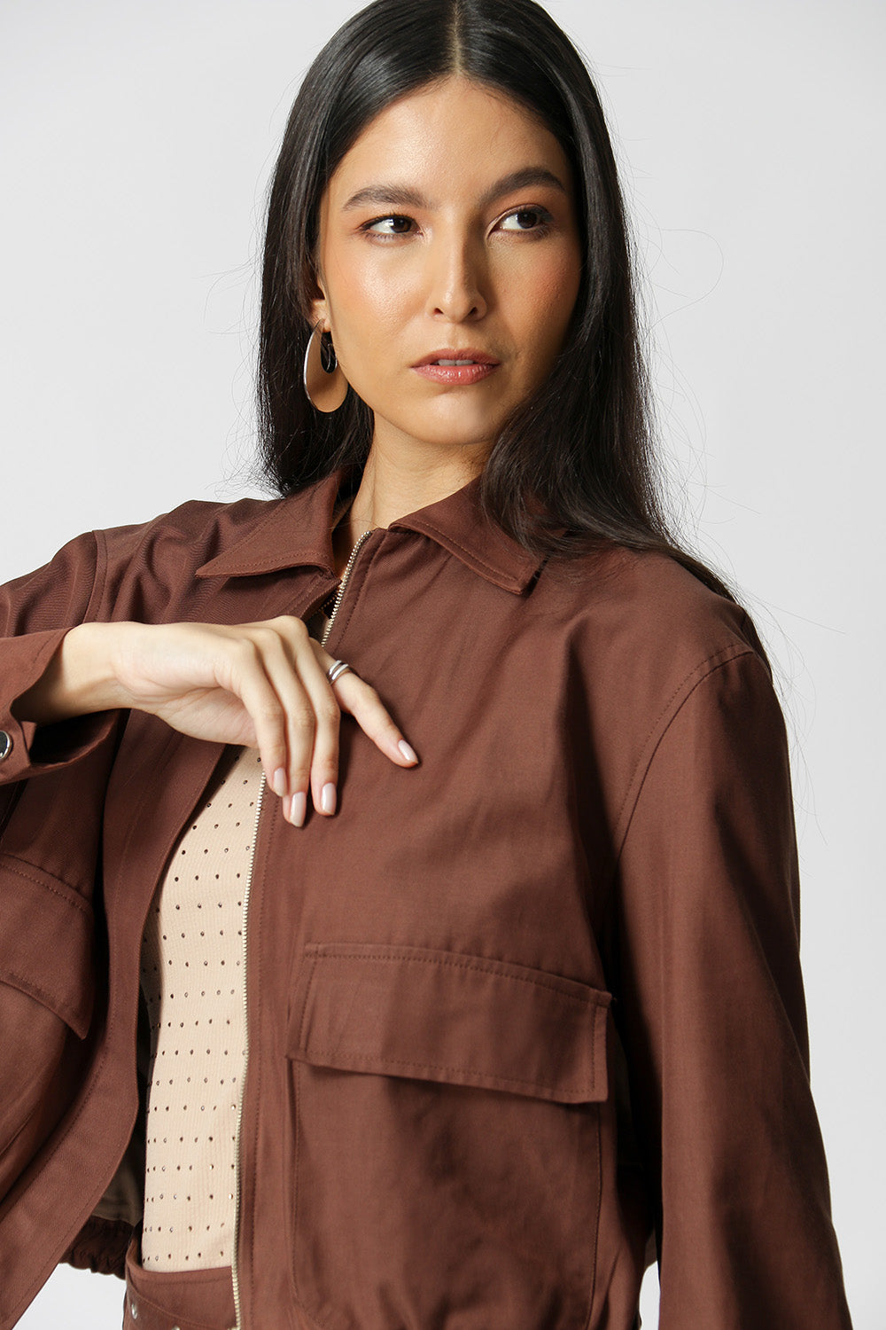• Jaqueta Bomber Com Bolsos Amplos - MARROM