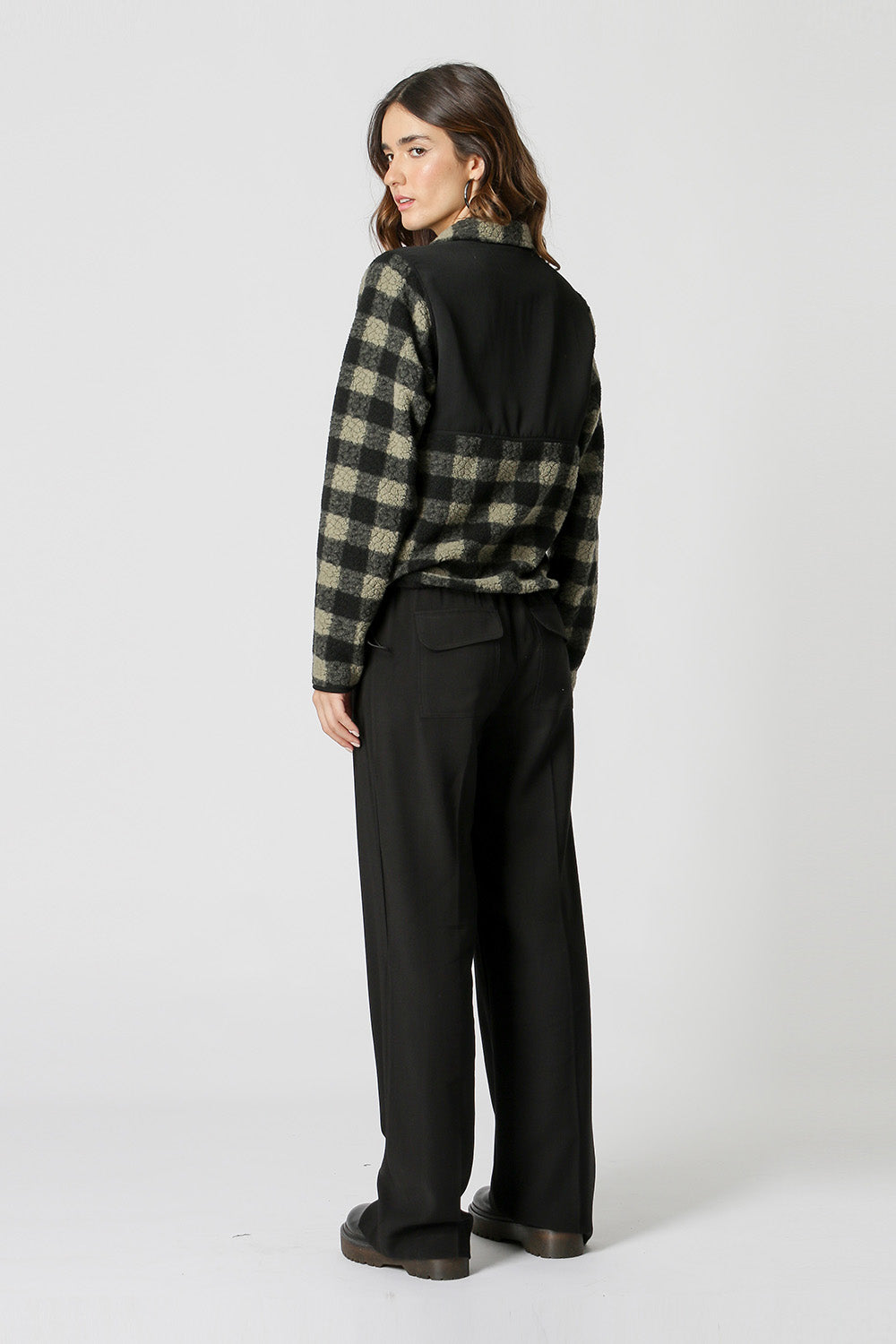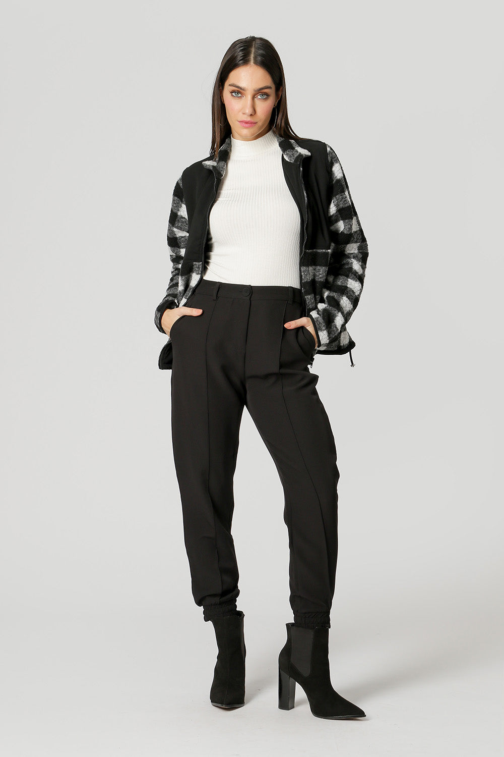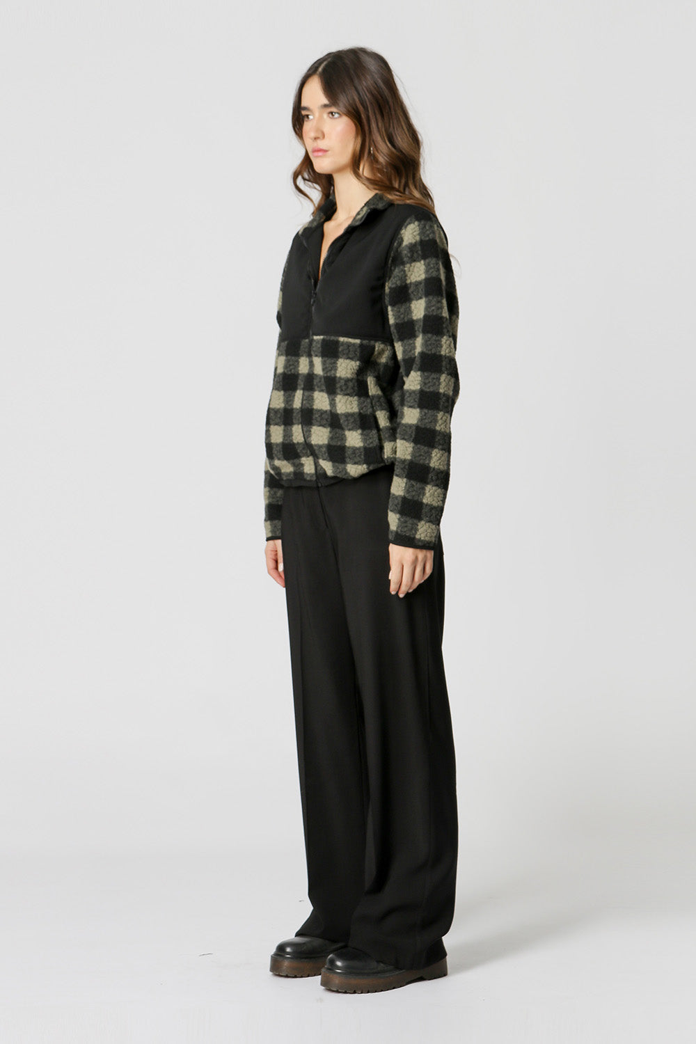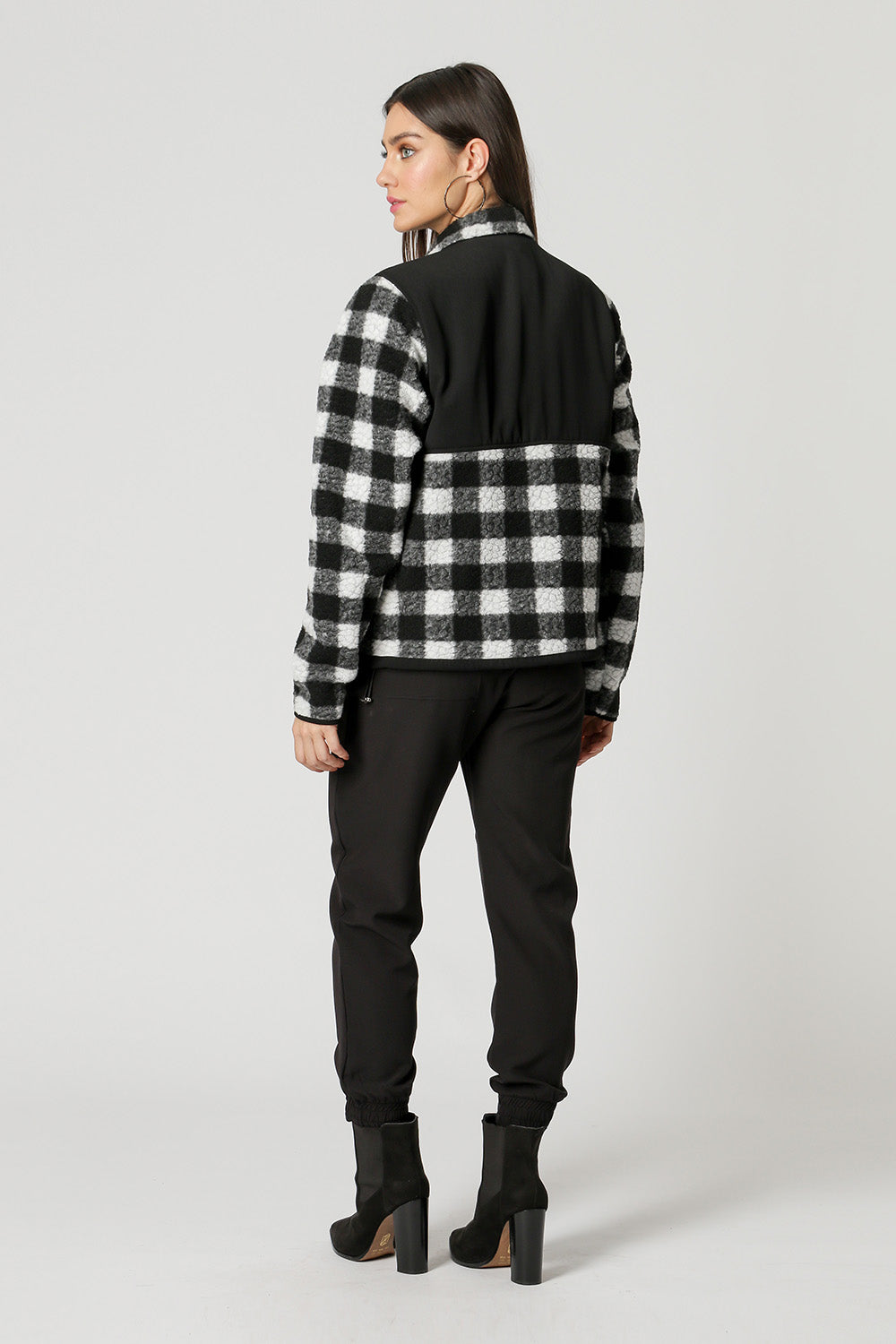Jaqueta bomber xadrez com detalhe em elástico na barra junto com regulador de metal. Uma peça confeccionada em tecido camer fur, peça cheia de estilo e confortável, perfeito para arrasar nesse inverno.