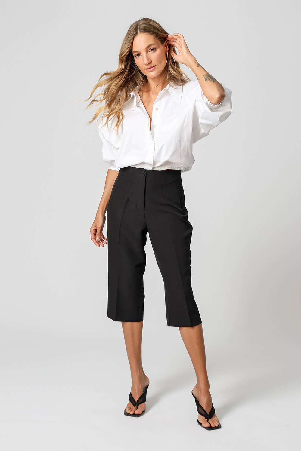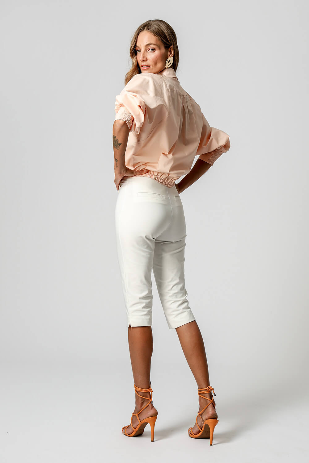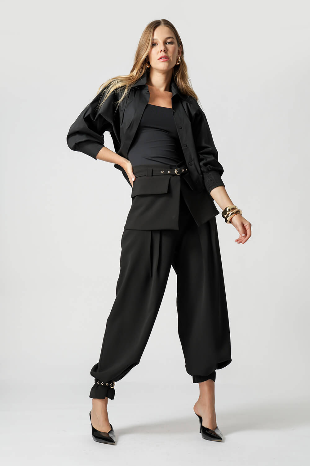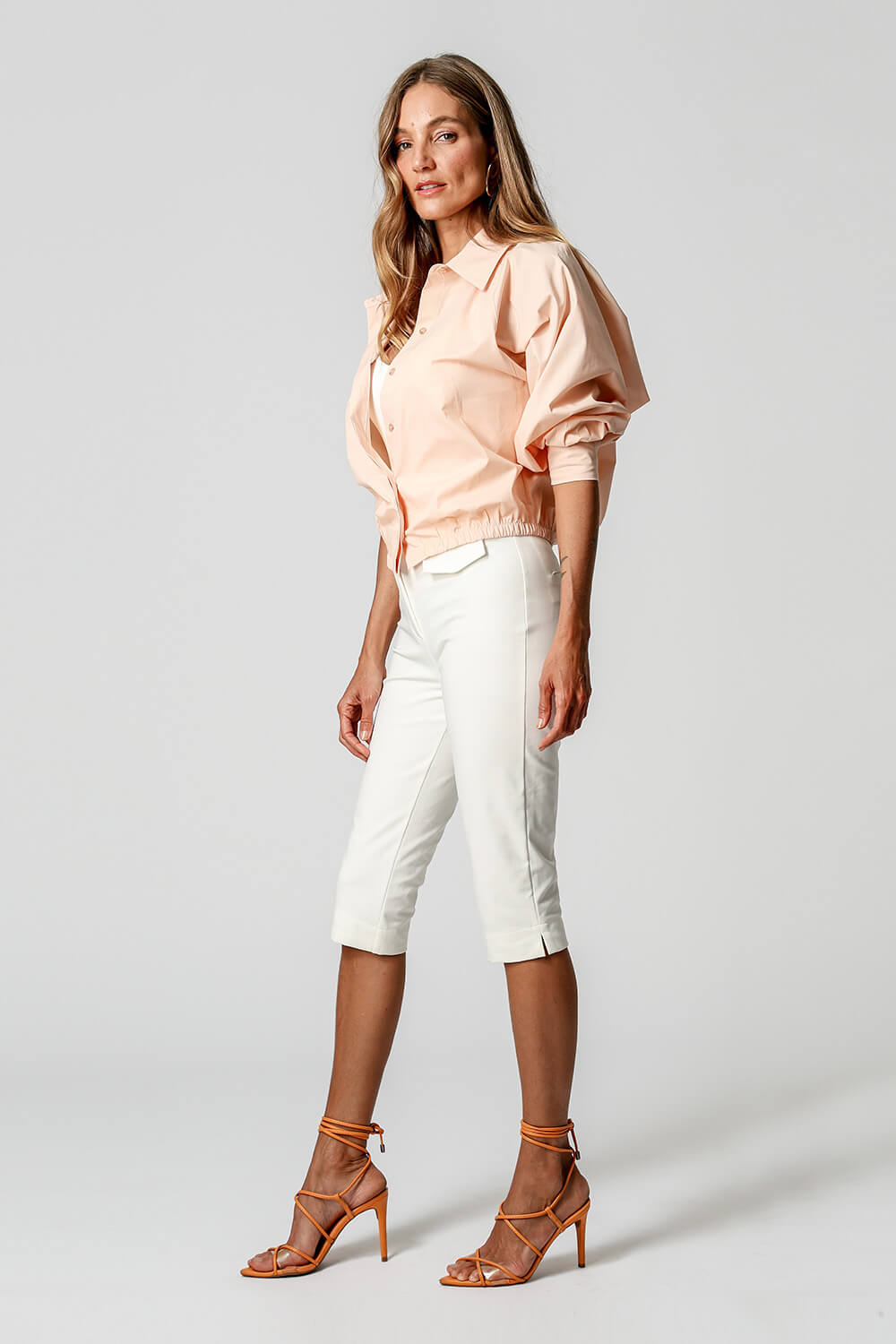 Com shape balonê moderno, esta jaqueta camisa traz punhos com lastex e vista dupla que esconde os botões, garantindo um visual sofisticado. Confeccionada em tricoline leve e estruturada, é perfeita para looks estilosos e versáteis.