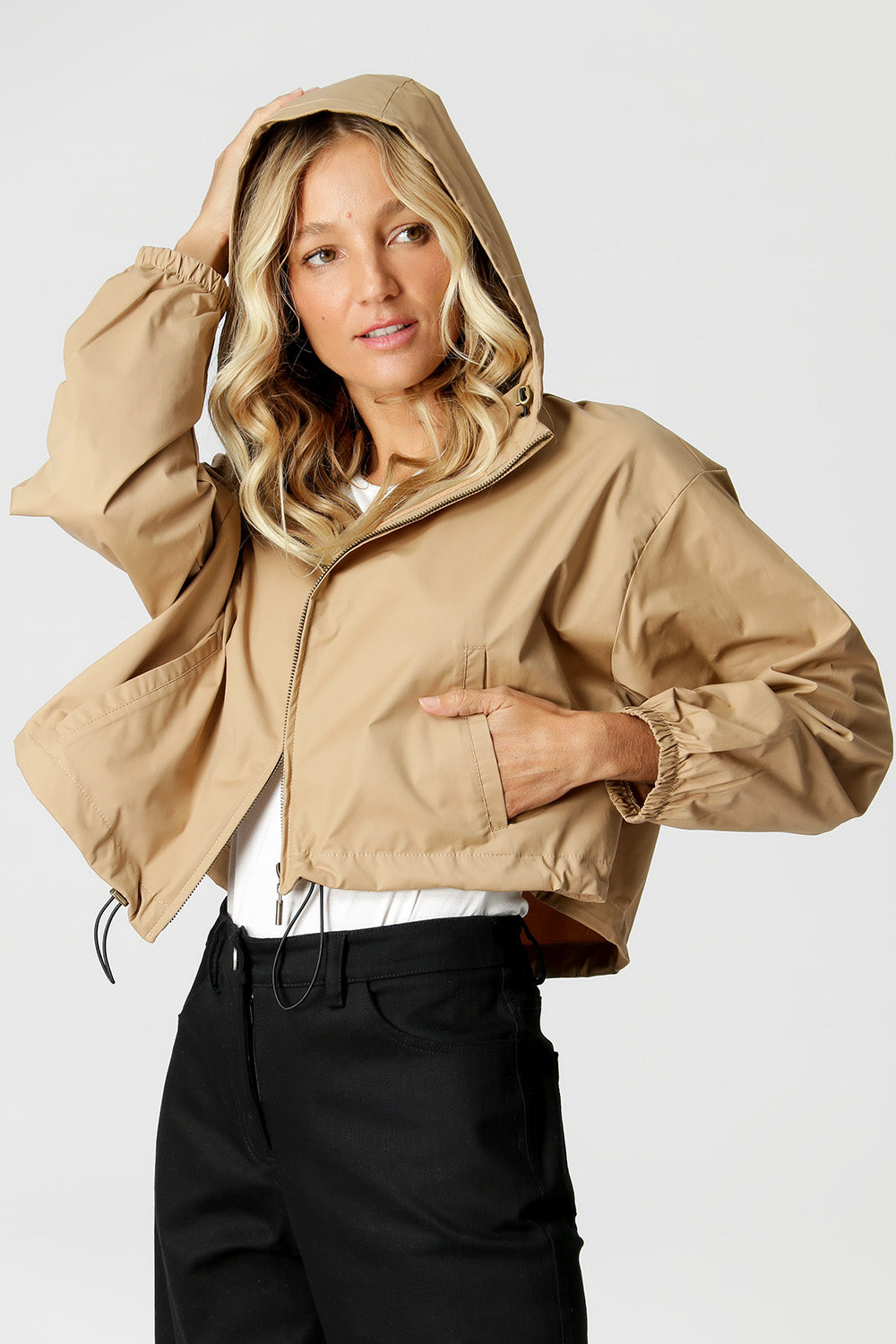 Jaqueta corta vento, manga longa e capuz, feita em tecido esportivo. Possui detalhe de zíper e reguladores de metal. É o básico diferenciado que você estava procurando.