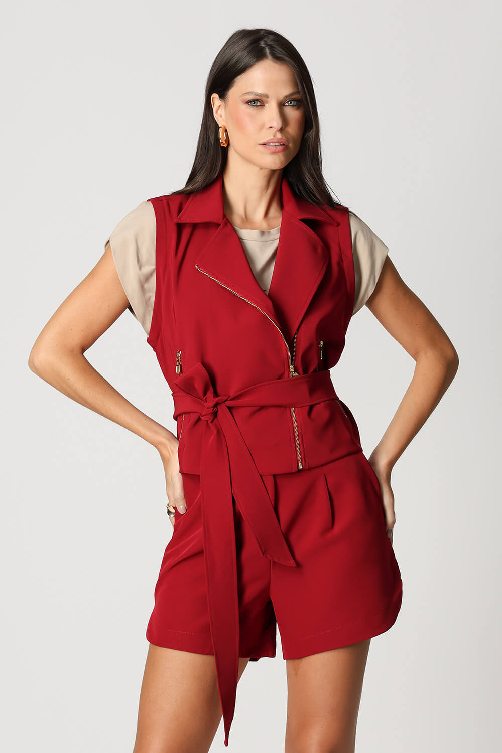 Praticidade e estilo em uma só peça. Com mangas removíveis por zíper, essa jaqueta se transforma em um colete moderno em segundos. Confeccionada em tecido de alfaiataria, tem caimento elegante e versátil para diversas ocasiões.