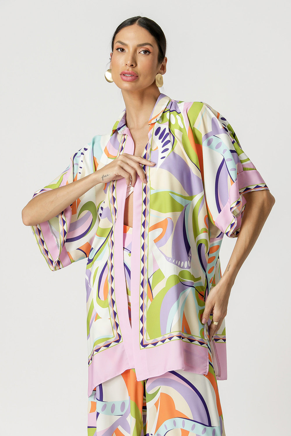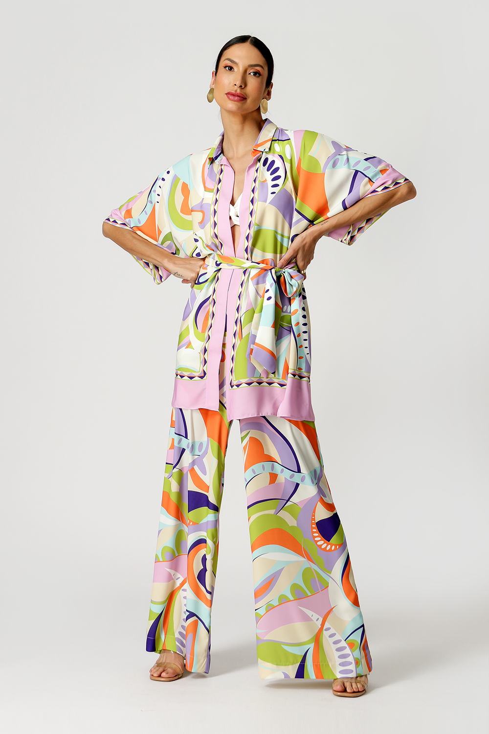 Kimono com faixa. Confeccionada tecido leve. Peça tendência perfeita para arrasar  no look casual.