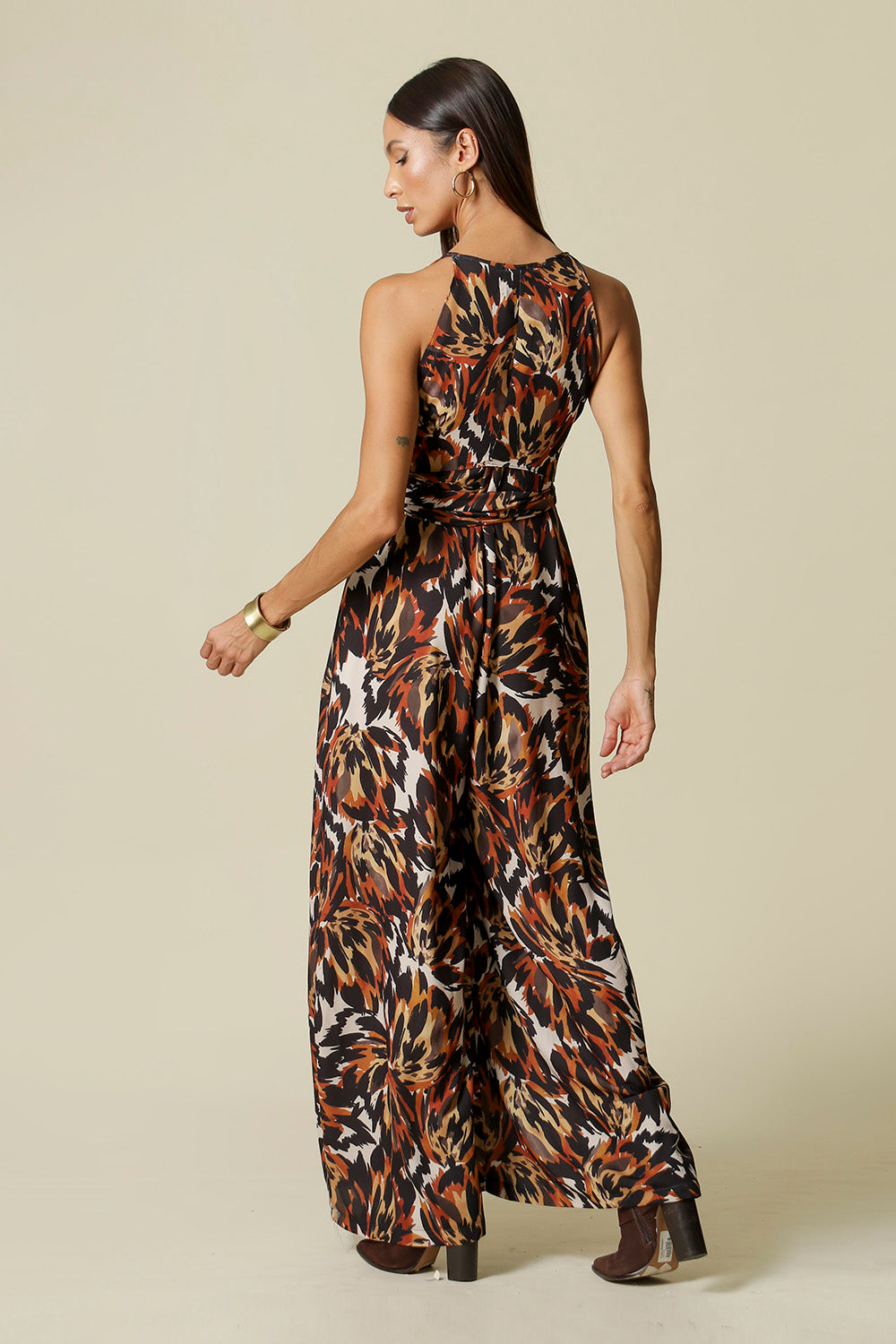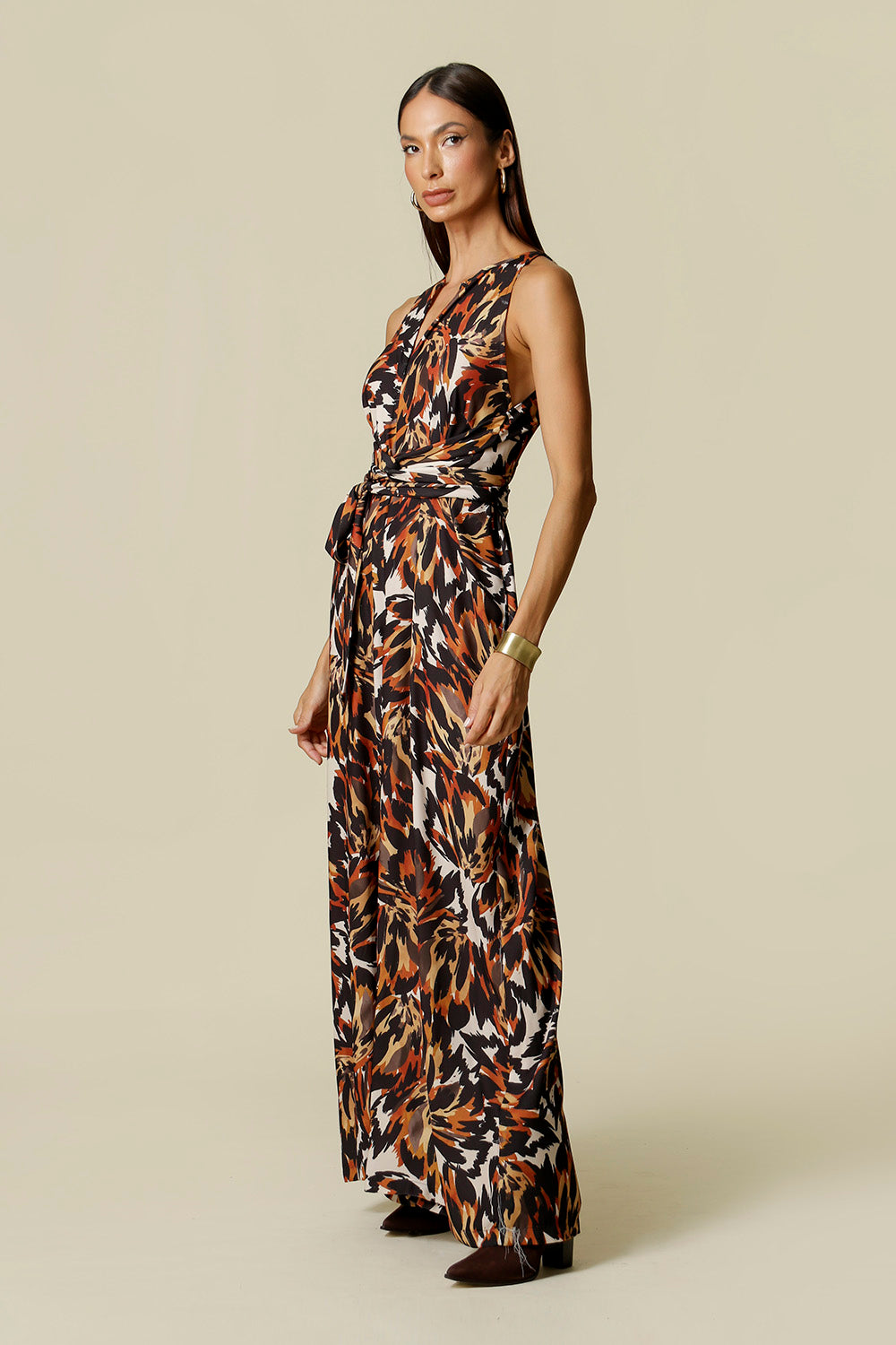 Macacão com detalhe de amarração. Peça confeccionada em tecido crepe fluido premium. Uma peça elegante e cheia de charme para arrasar com look work.