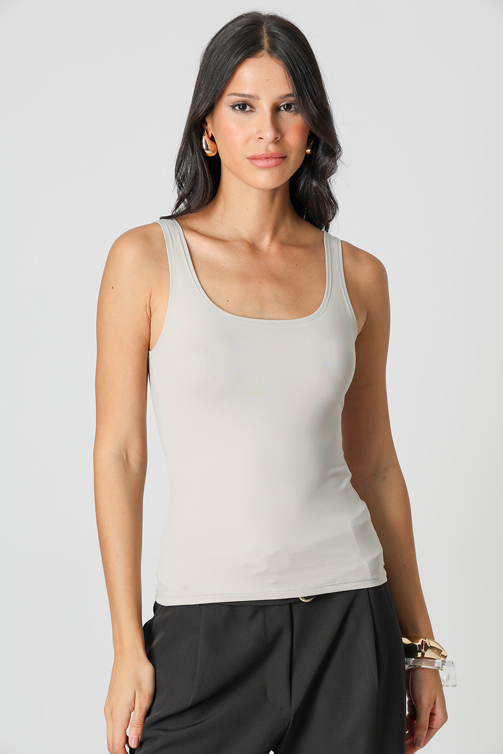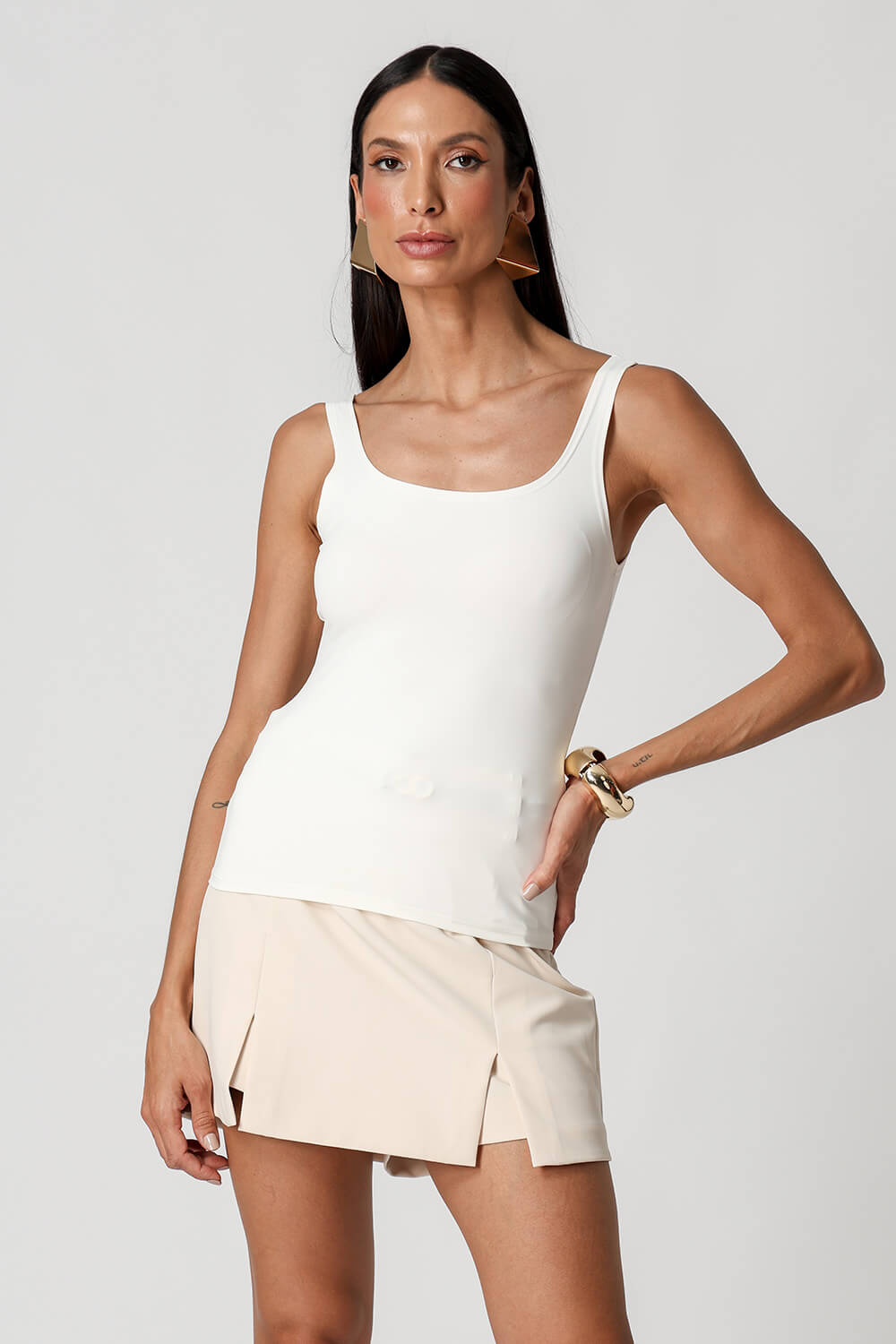 Regata de modelagem limpa, com alças largas e confeccionada em malha AMNI. O básico essencial que não pode faltar no closet.