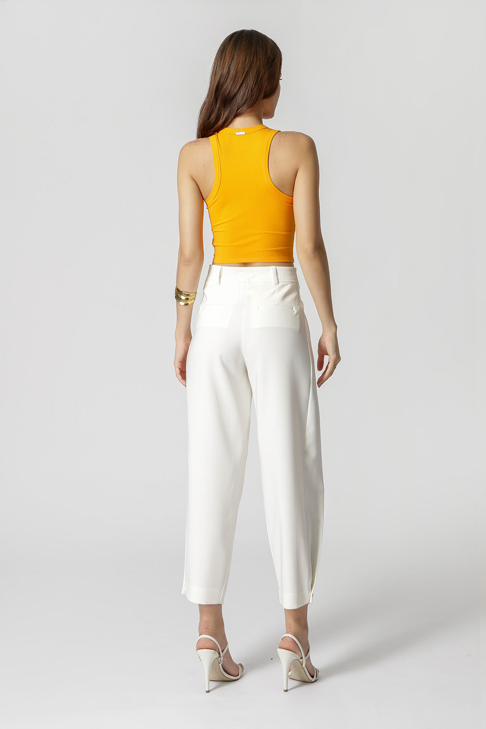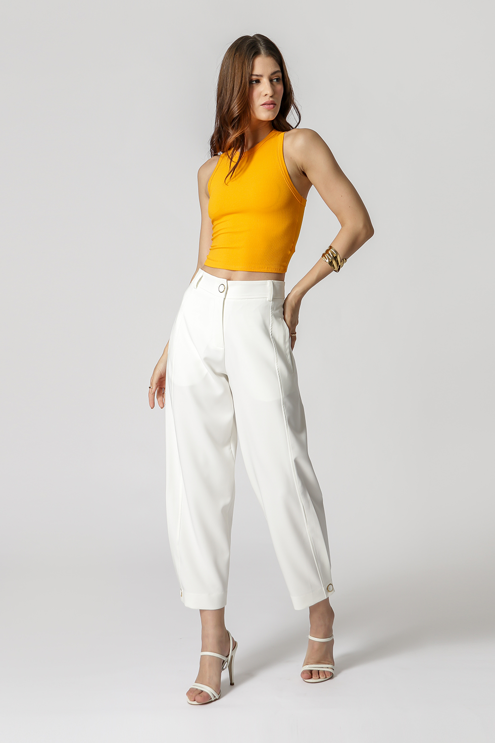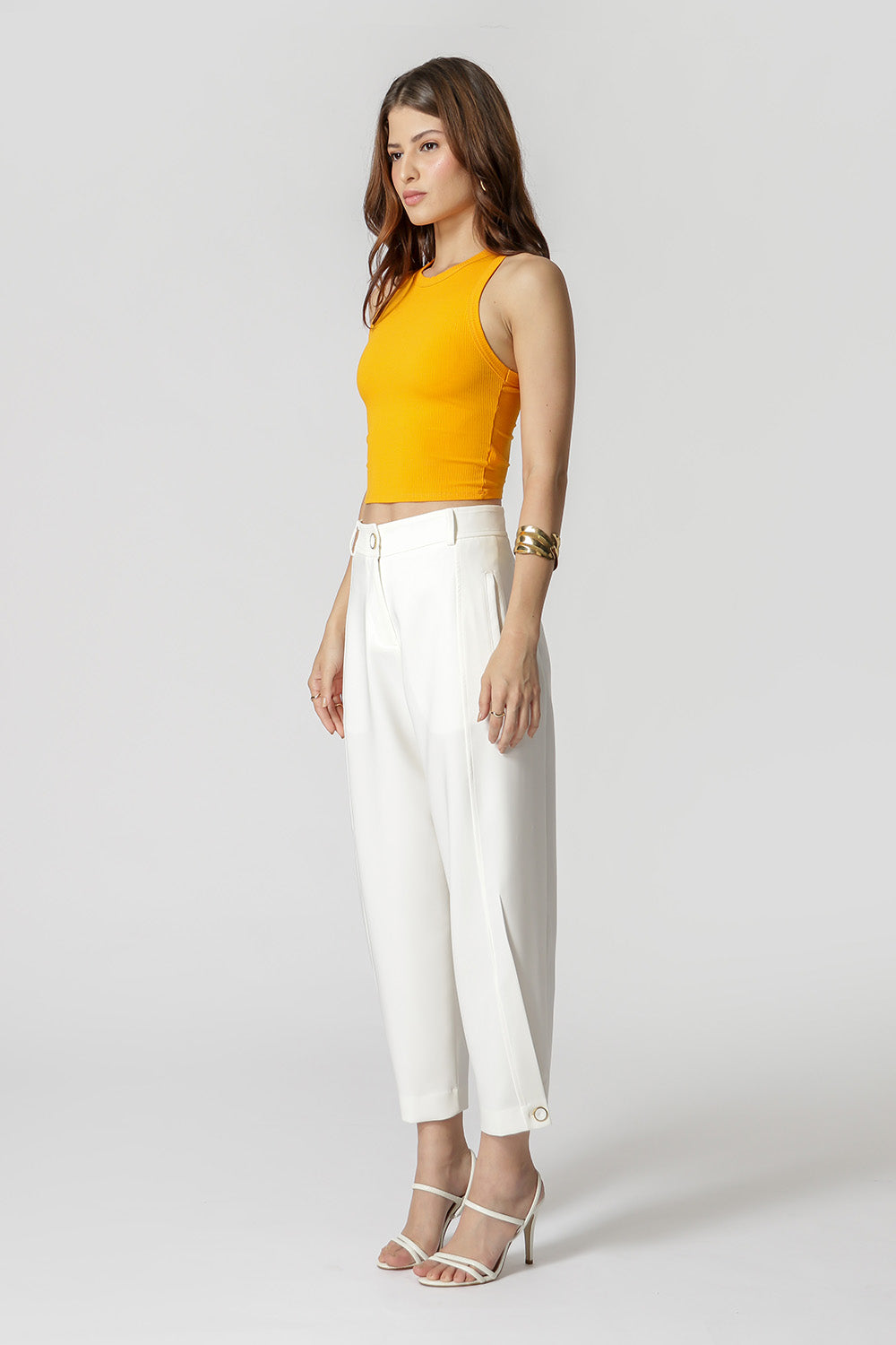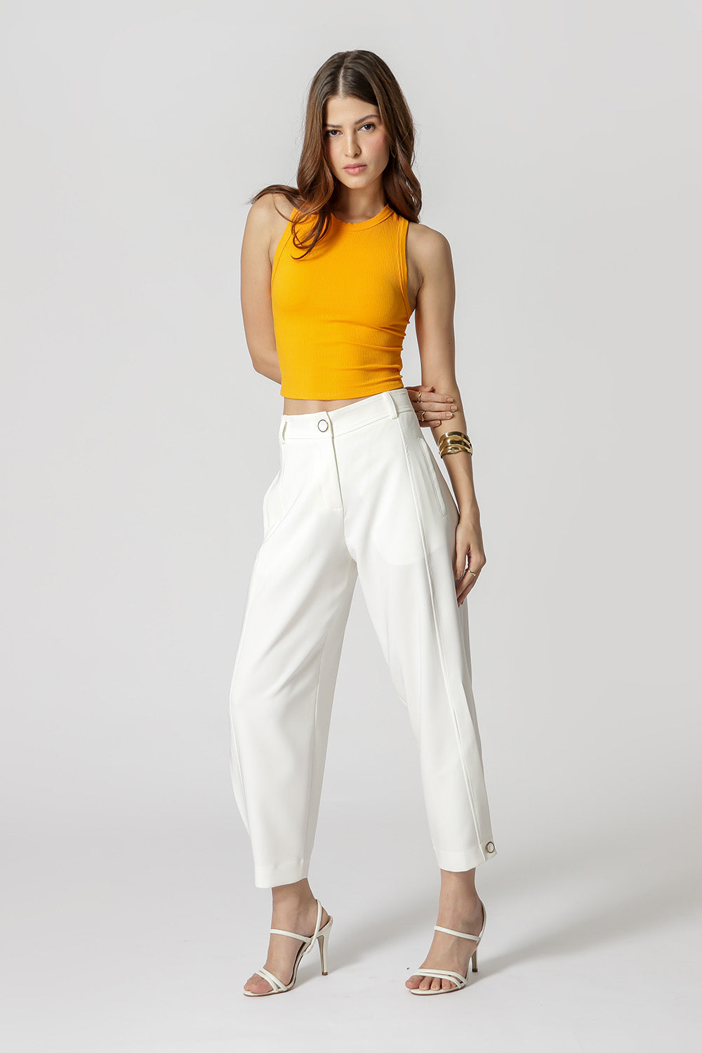 Blusa cropped sem mangas, confeccionada em malha canelada. Básico, casual e indispensável.