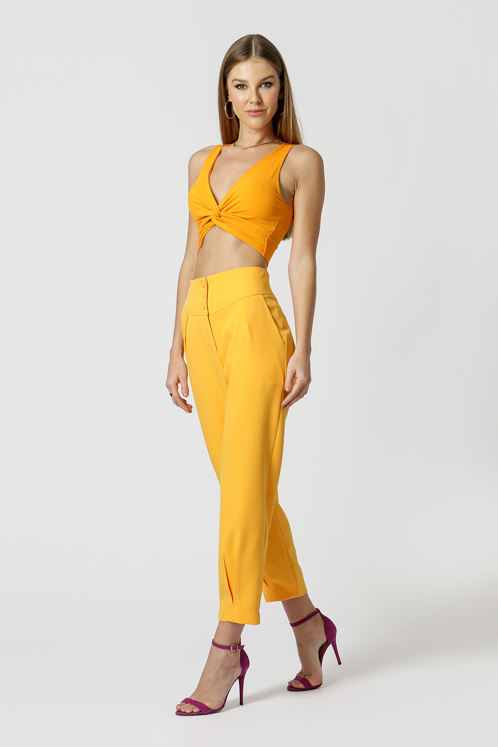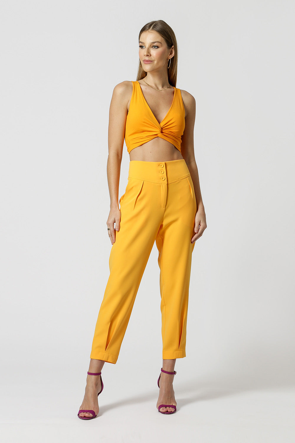 Regata cropped com shape justo ao corpo e decorte com detalhe de twist. Peça feita em malha canelada slim. Perfeito para compor seu look do dia a dia!