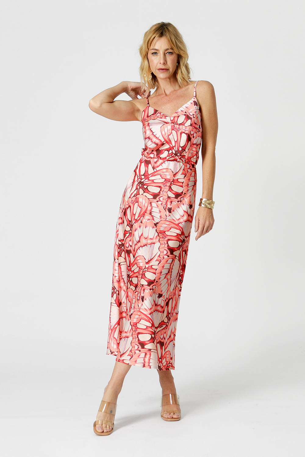 Regata com alças fina com reguladores e decote em V. Confeccionada em tecido cetim bubble estampado. Uma peça com caimento leve, prática e perfeita para compor looks neste verão.