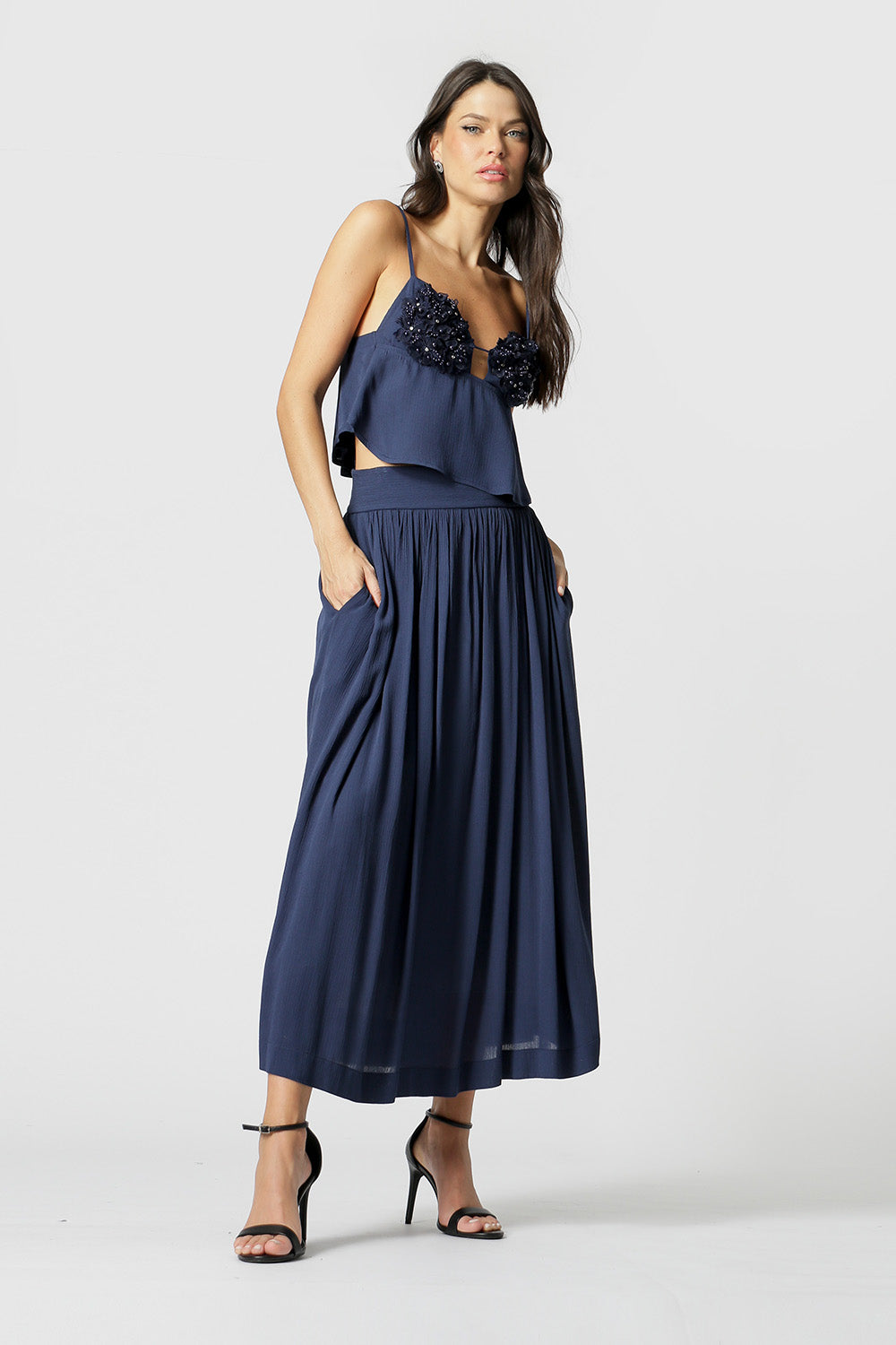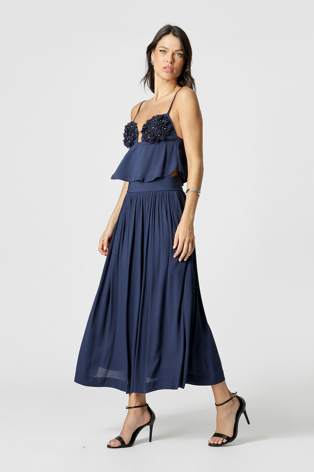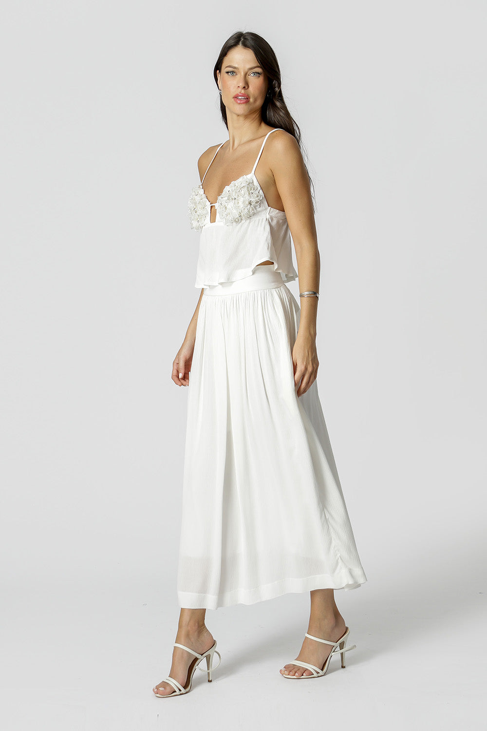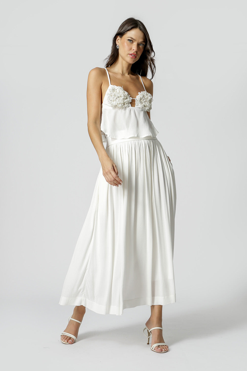 Regata com alça regulavéis em detalhe de flower no busto com elástico na parte posterior. Uma peça confeccionada em tecido fluido e leve textura. Um modelo que trás um visual fashion, delicado e perfeito para arrasar no seu look.