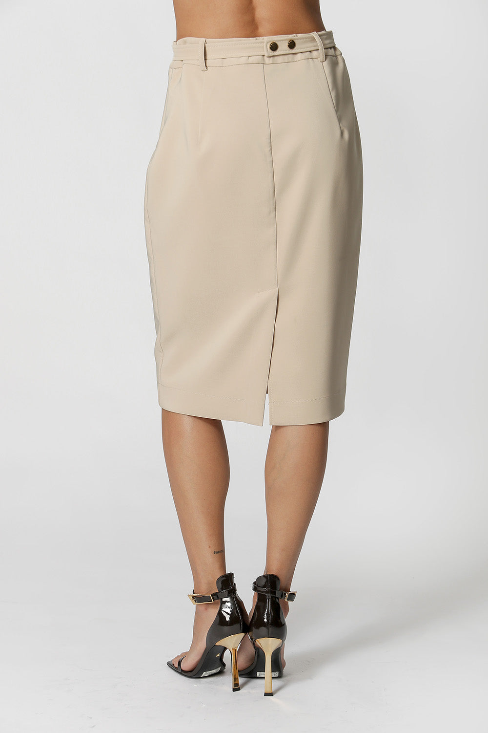 Saia co cinto em alfaiataria. Um modelo elegante que pode ser usado em várias ocasiões e que não pode faltar em seu guarda-roupa.