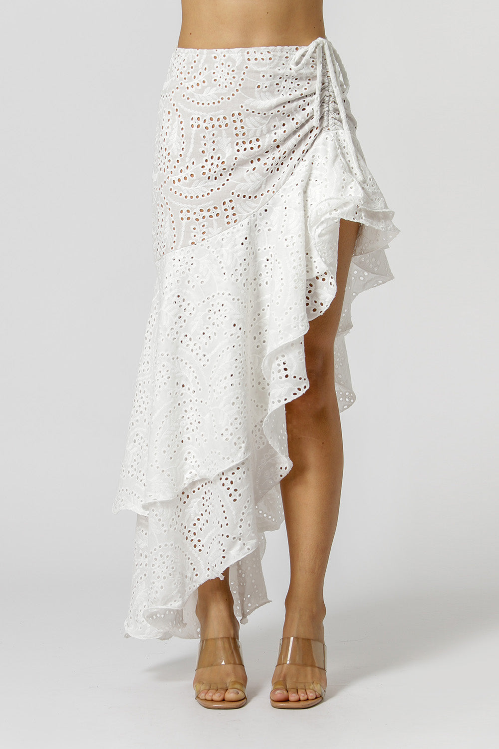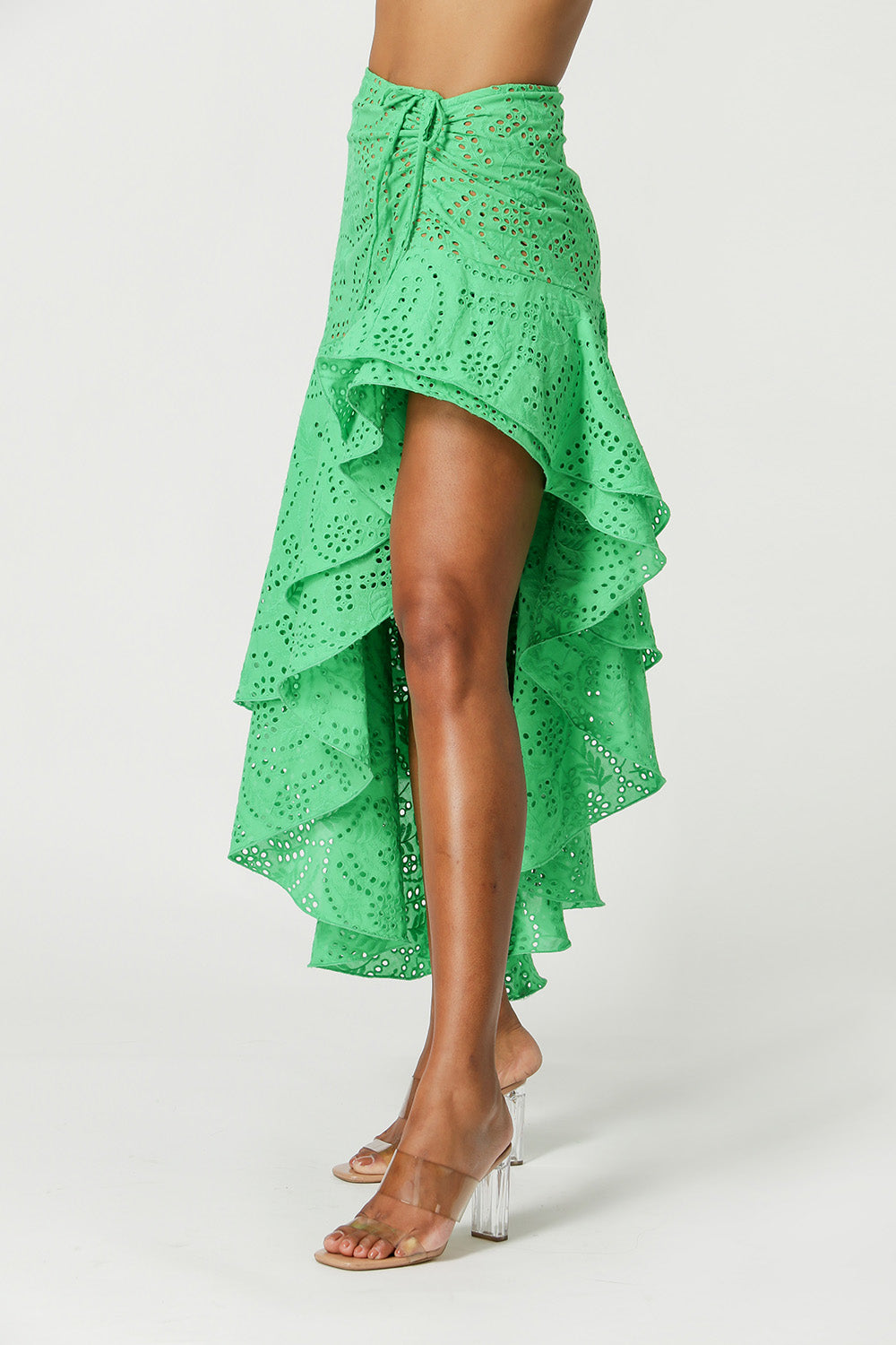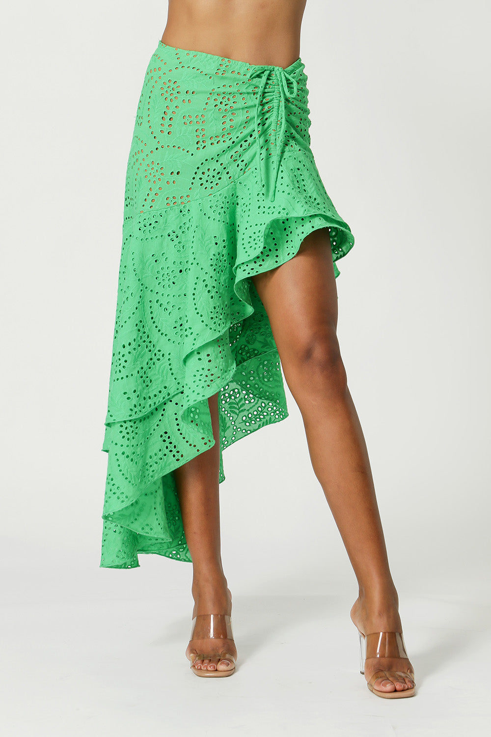 Saia com detalhe em babado na lateral.Peça confeccionada com tecido diferenciado. Modelo perfeito para arrasar e compor um look casual.