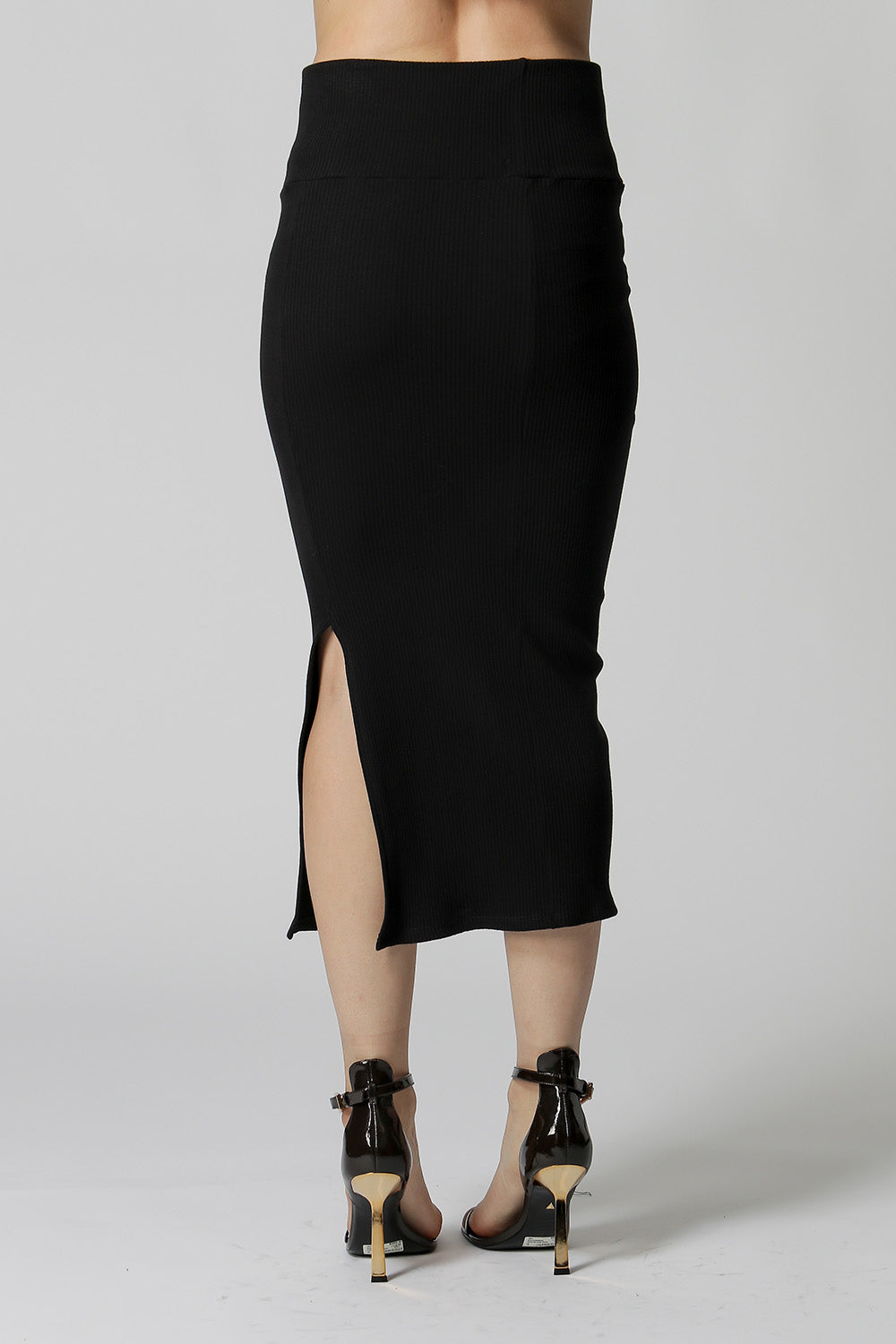 Possui pala larga, fenda na lateral, e elástico na cintura para leve compressão