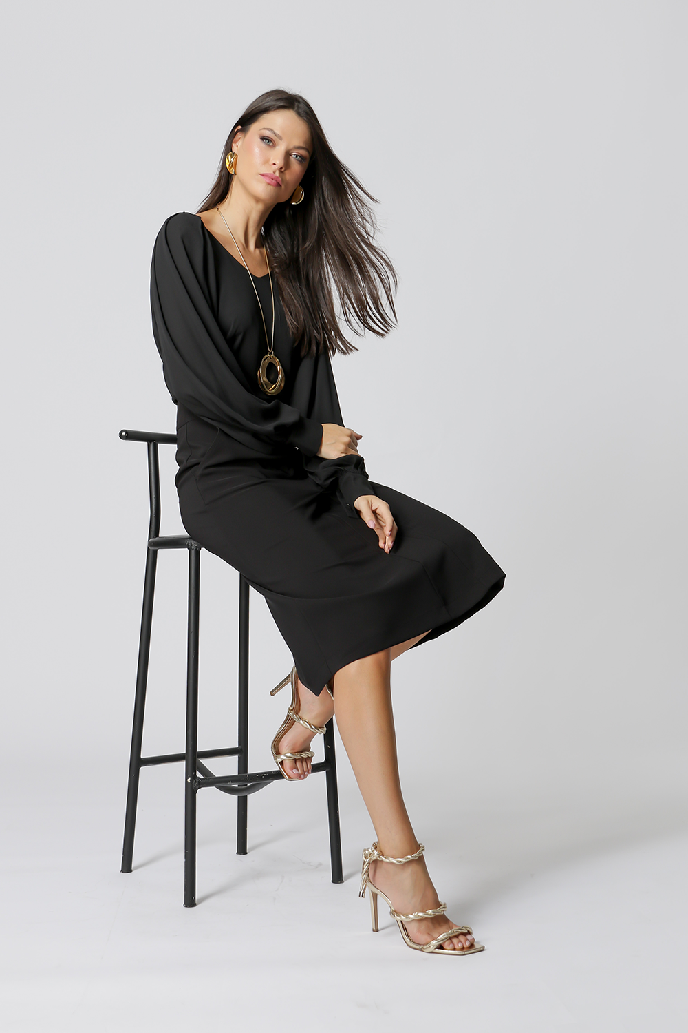 Vestido Ombro a Ombro Com Fenda - PRETO