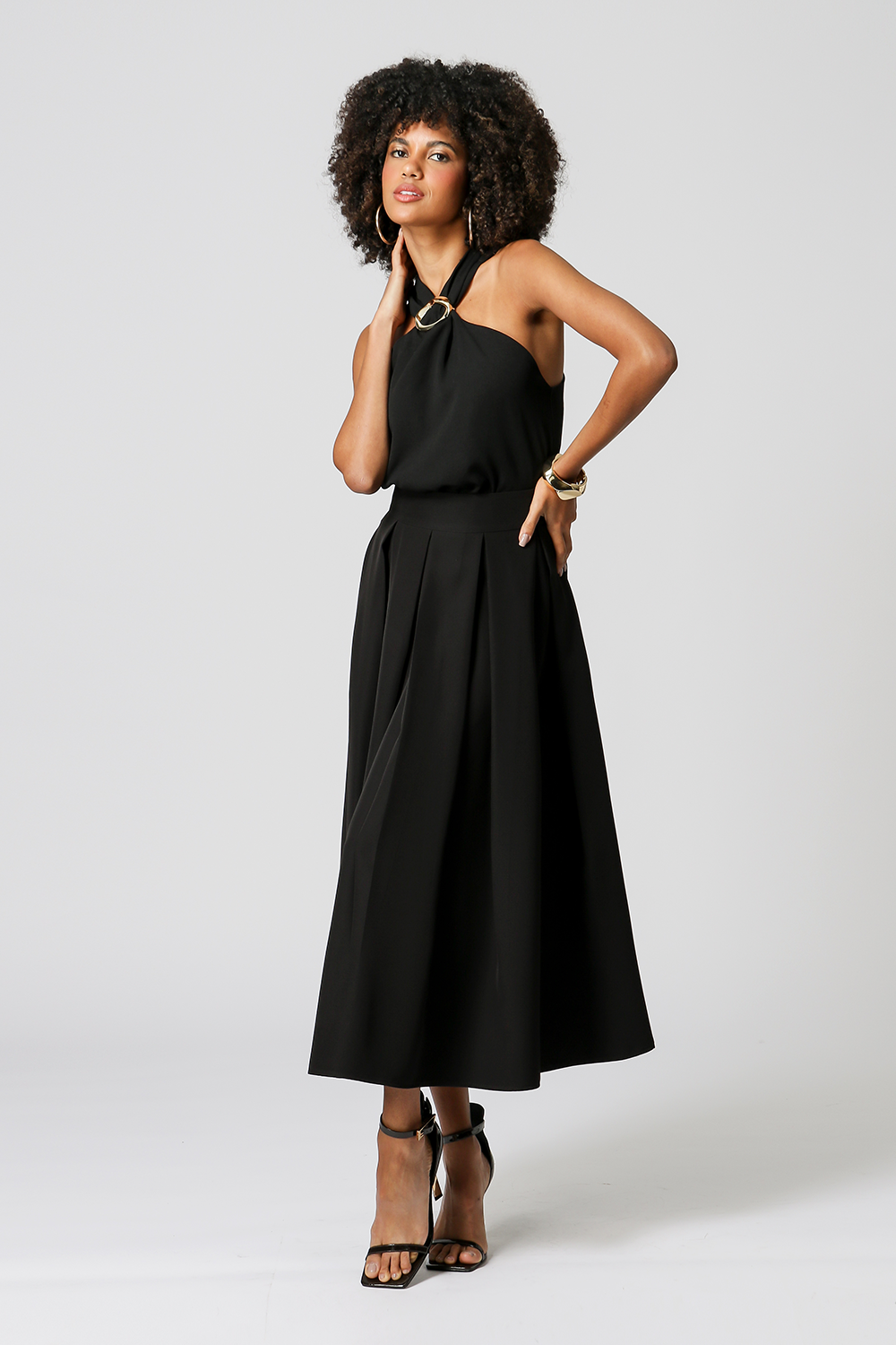 • Saia Com Pregas Em Alfaiataria - PRETO 1