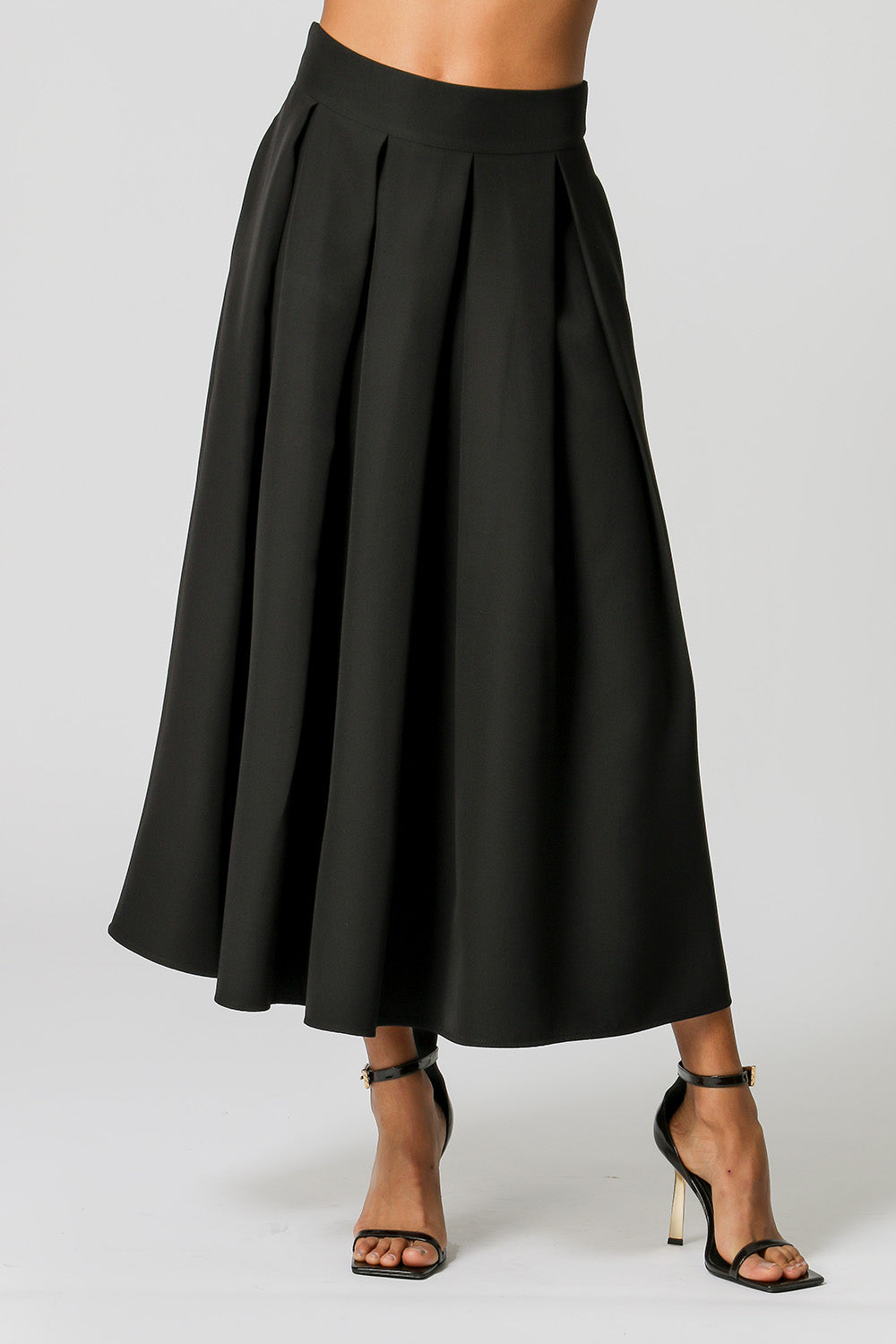 Saia Com Pregas Em Alfaiataria - PRETO 1