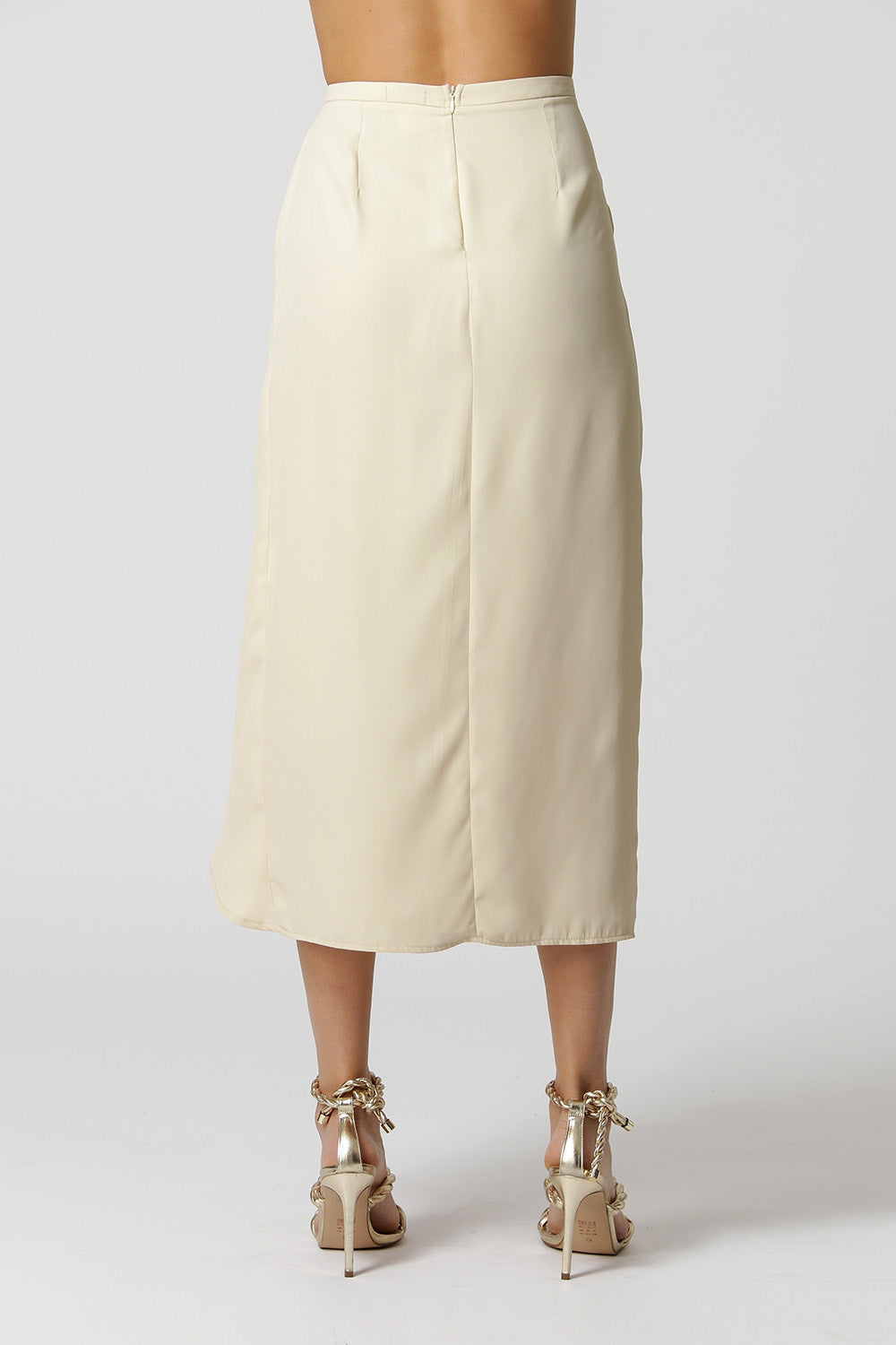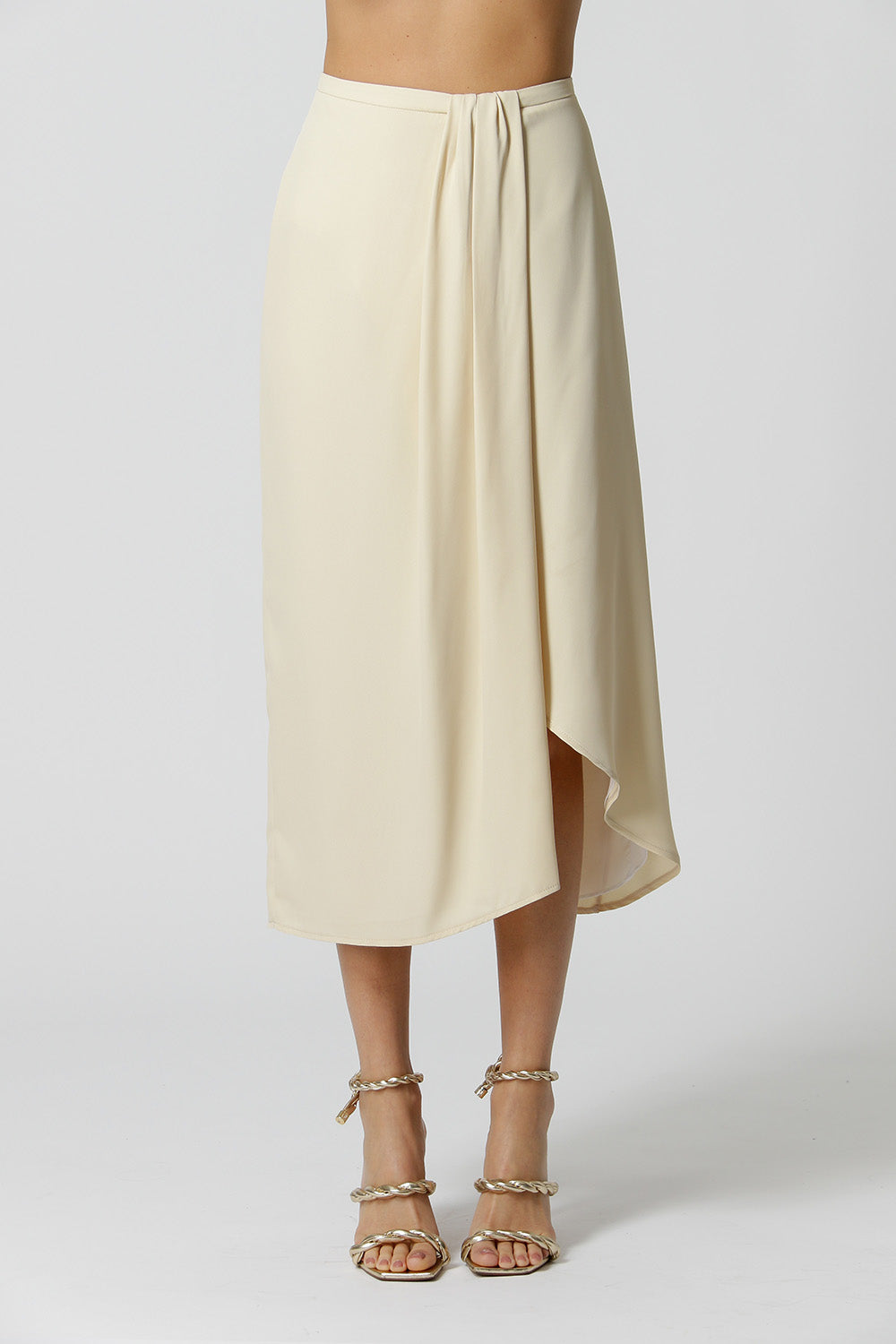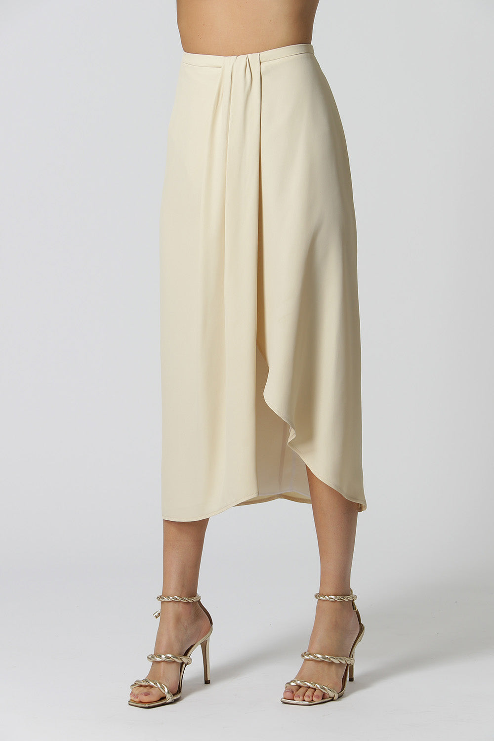 Saia confeccionada em crepe fluído, com um transpasse delicado e detalhe frontal. Uma peça cheia de charme para um look elegante.
