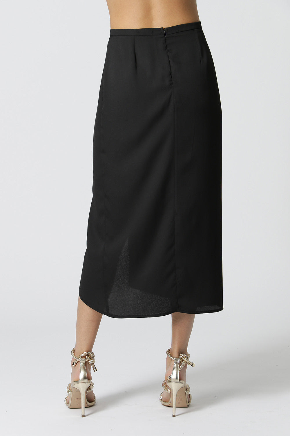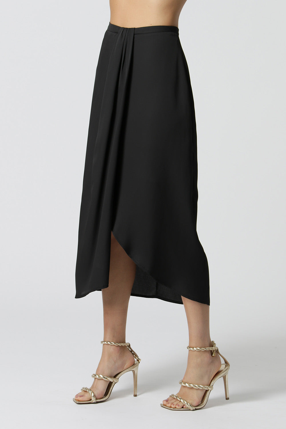 Saia confeccionada em crepe fluído, com um transpasse delicado e detalhe frontal. Uma peça cheia de charme para um look elegante.