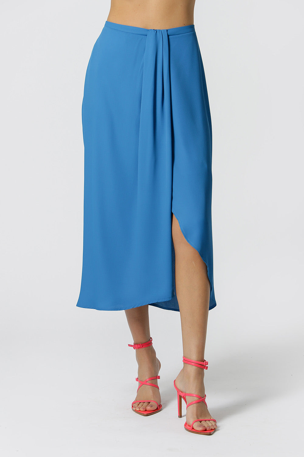 Saia confeccionada em crepe fluído, com um transpasse delicado e detalhe frontal. Uma peça cheia de charme para um look elegante.