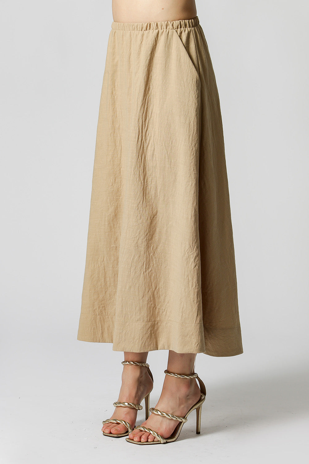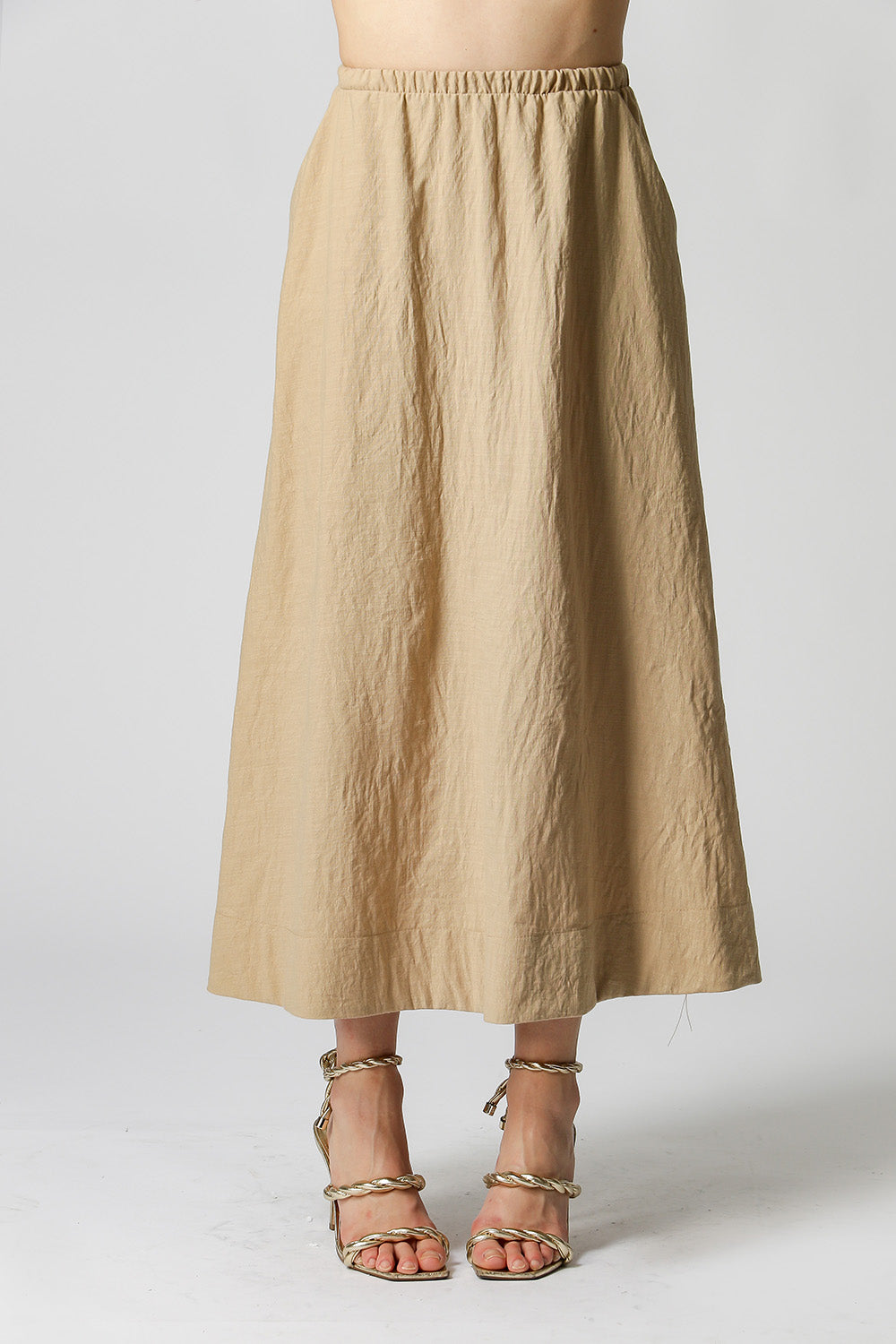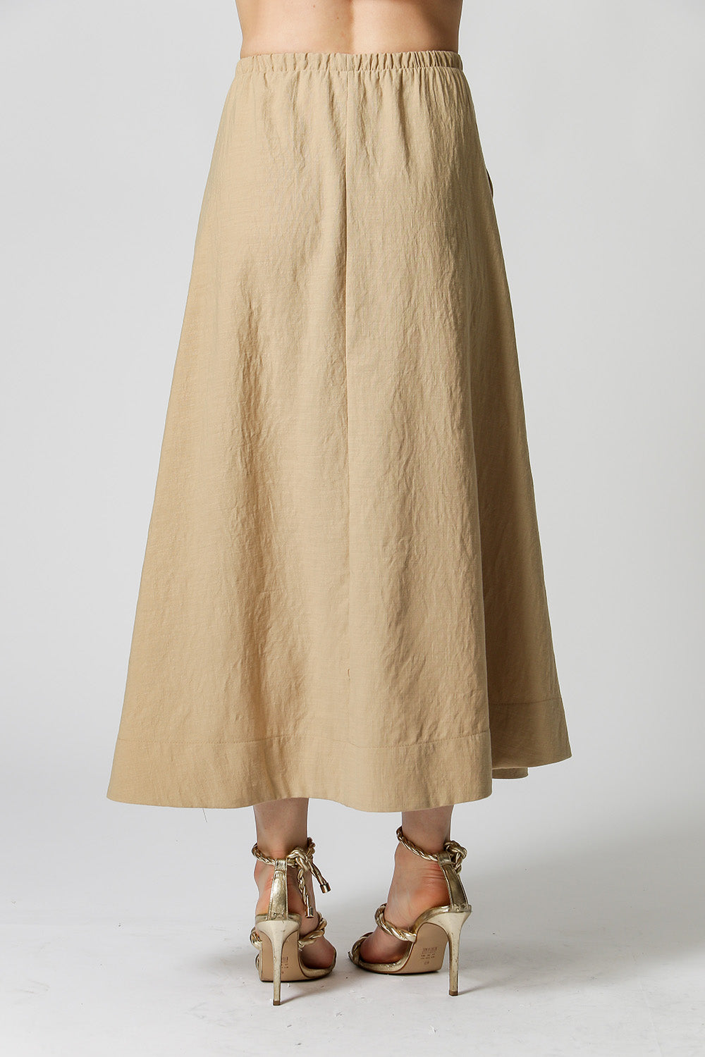 Saia Média com elástico no cós, peça perfeita para compor moods casuais.
