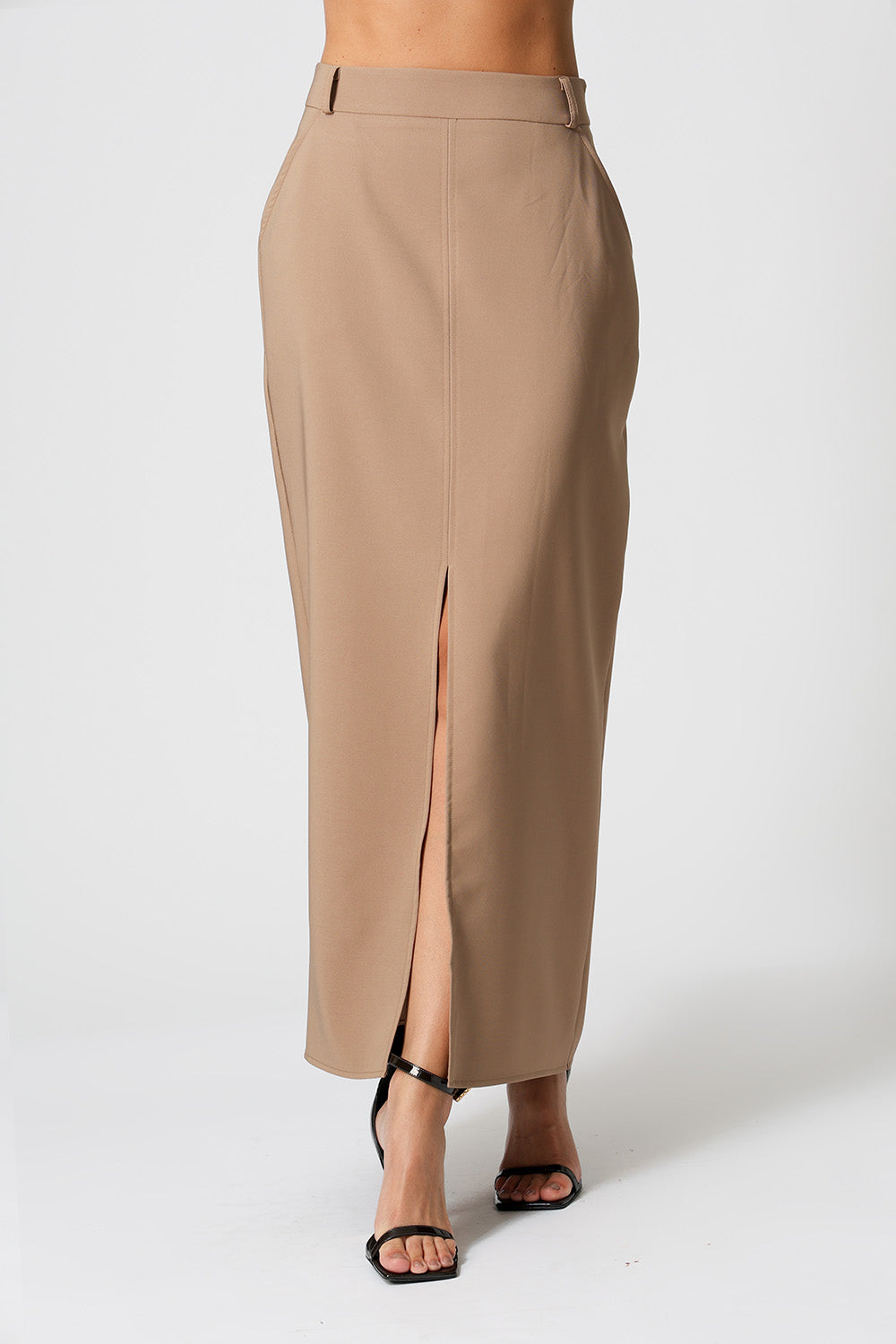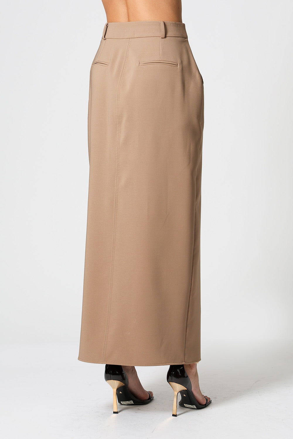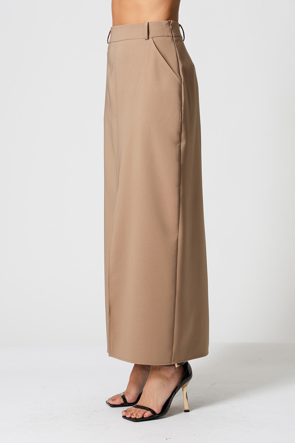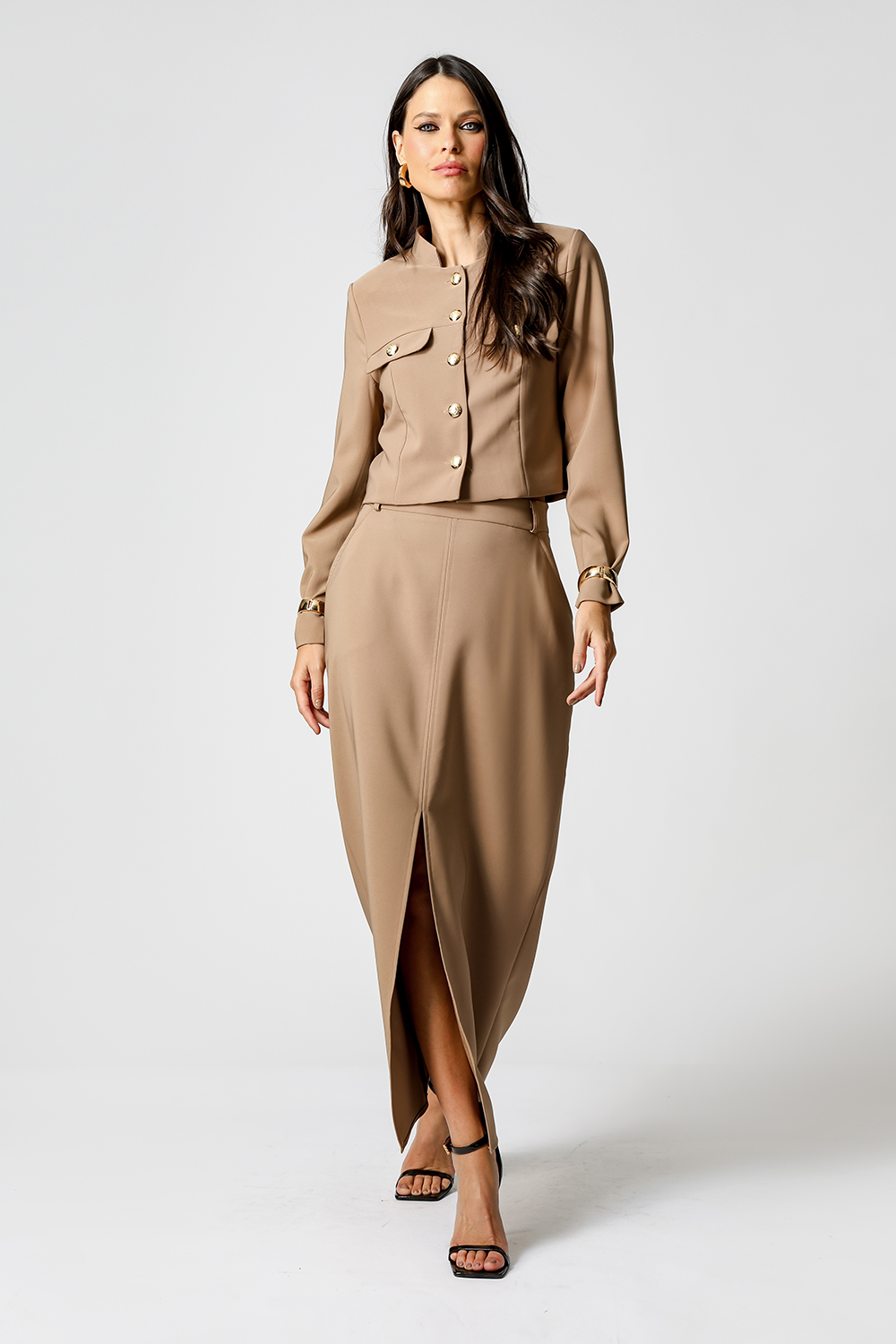 Saia média em alfaiataria. Uma peça clássica, elegante para looks work.